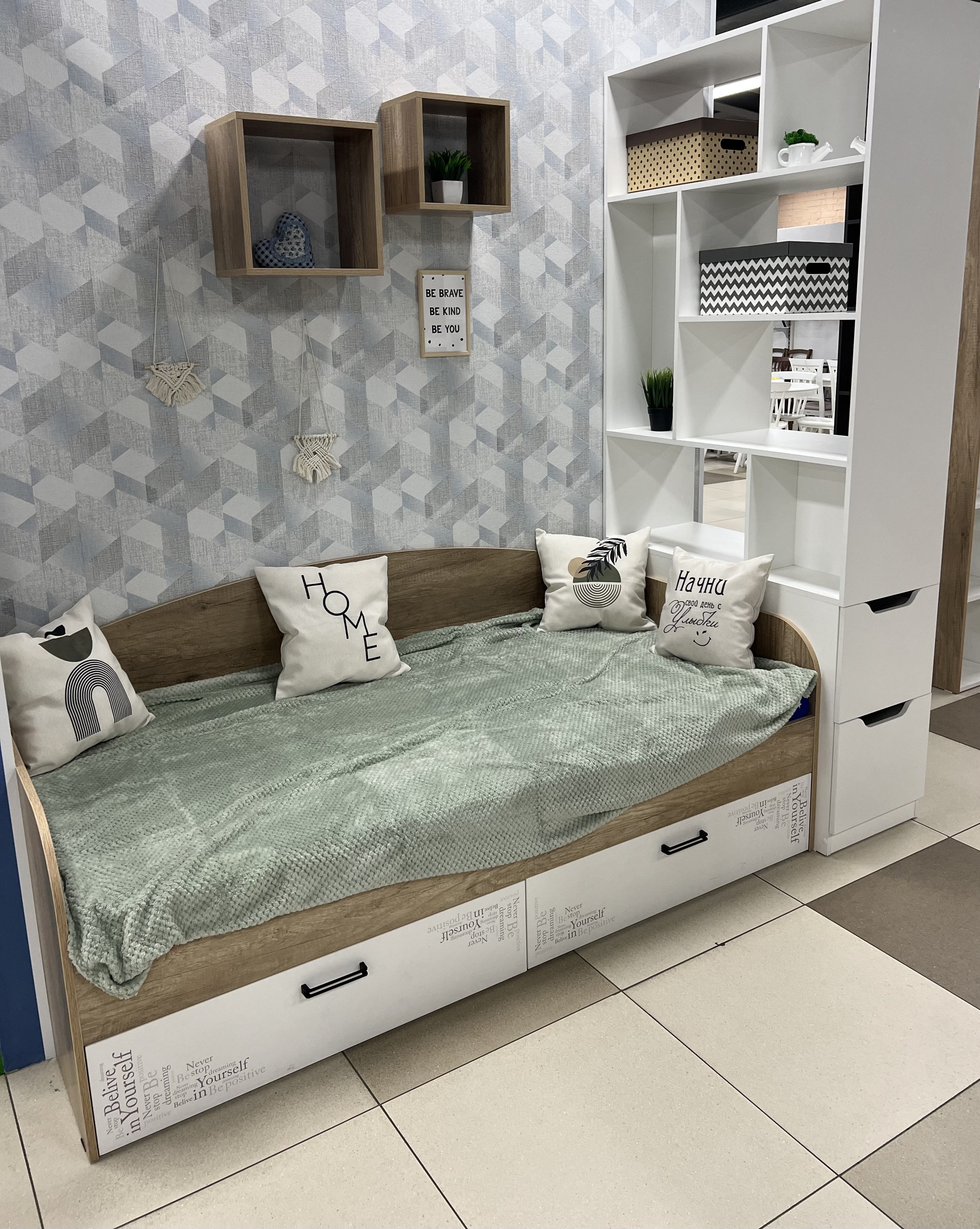 <comment>Просто шикарный стеллаж для создания зонирования! Подкупили сразу вместительные выдвижные ящики. Очень функционально. Кровать тоже отличная! Спасибо вам </comment>