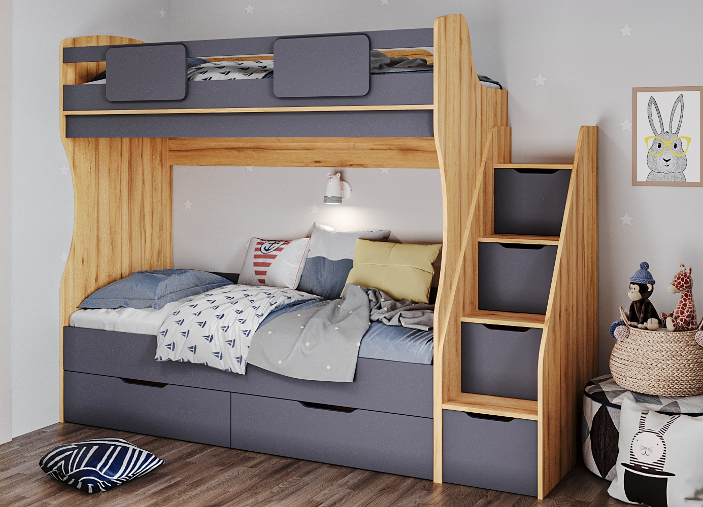 Двухъярусная кровать Миа в трендовых расцветках
