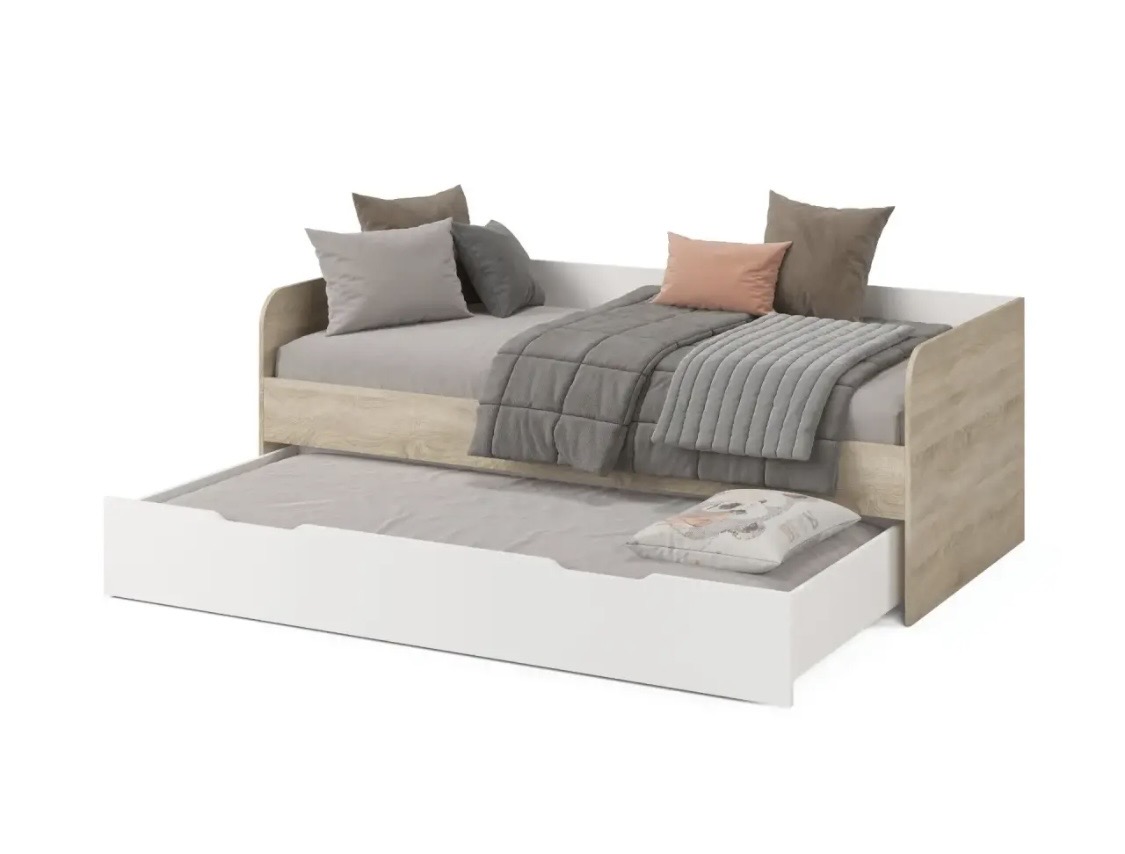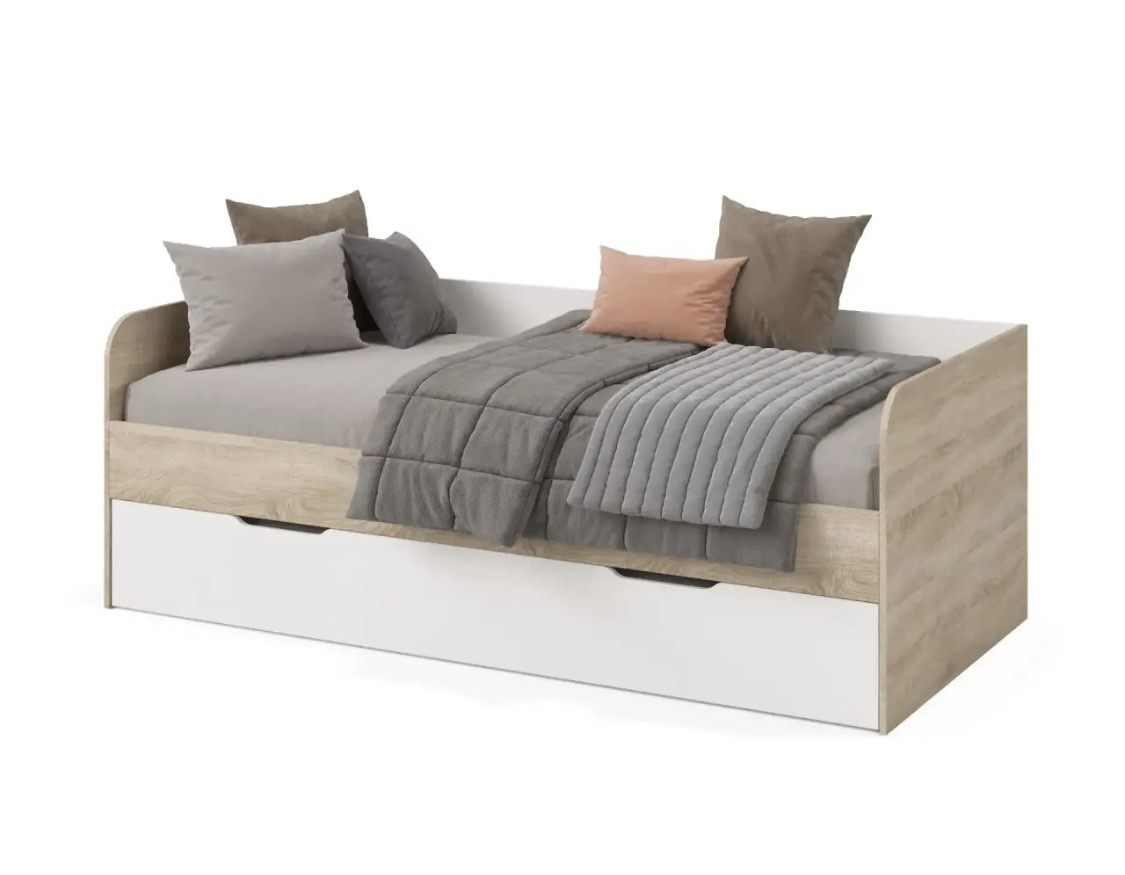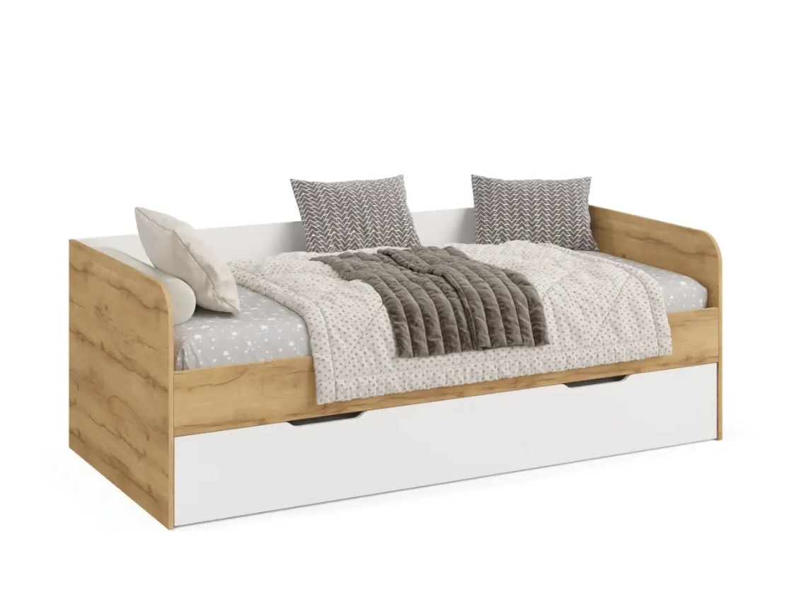 ЛДСП Е0,5. Толщина 16 мм. КРОВАТЬ ДОСТУПНА В ДЕКОРАХ: полностью белый, дуб золотистый + белый, велюр + белый, дуб сонома + белый
