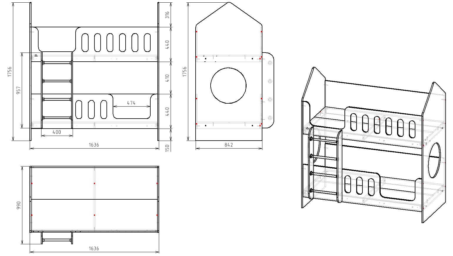* Основание кровати – прочный настил ЛДСП (НЕ РЕЙКИ!), который позволяет ребенку спать на ровной поверхности, что важно для детской спины.