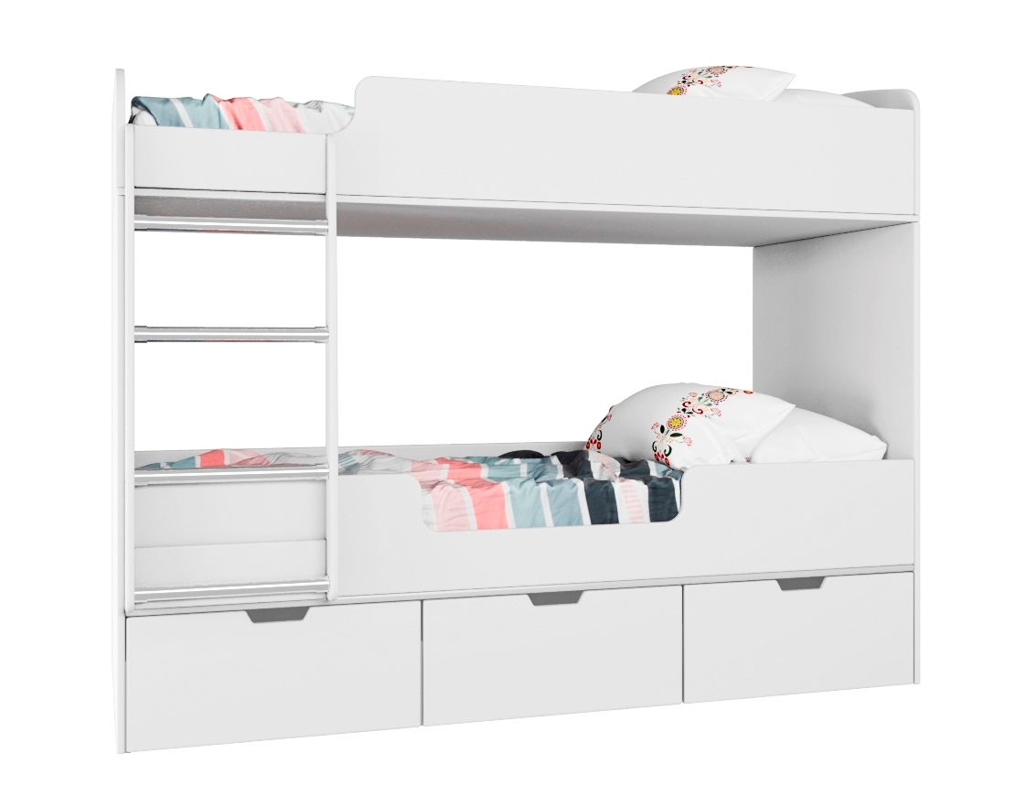 Кровать имеет три вместительных выдвижных ящика.