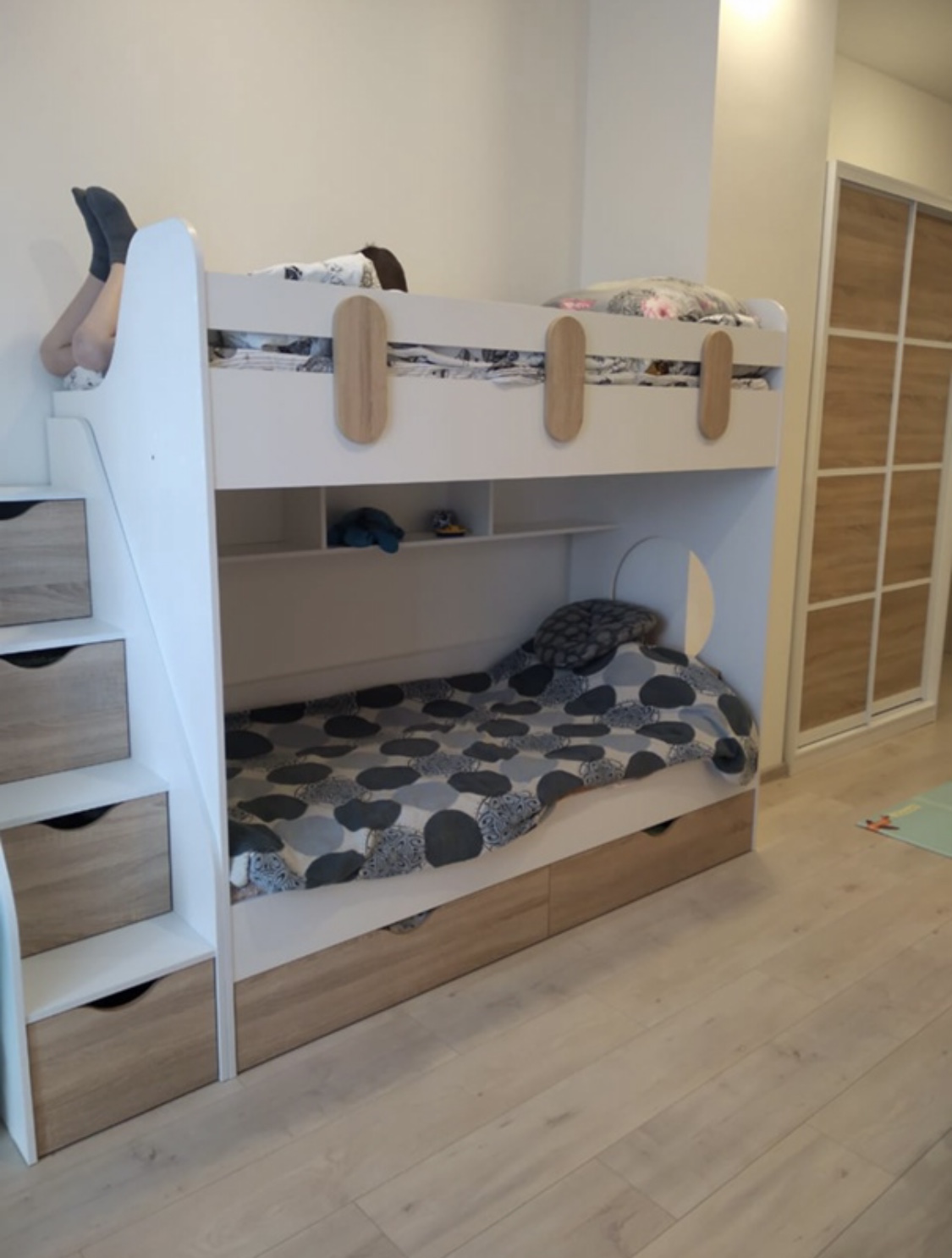 Вместо них - цельный и прочный настил из ЛДСП, который выдерживает сверхвысокую нагрузку и позволяет расположиться даже взрослому с ребенком.