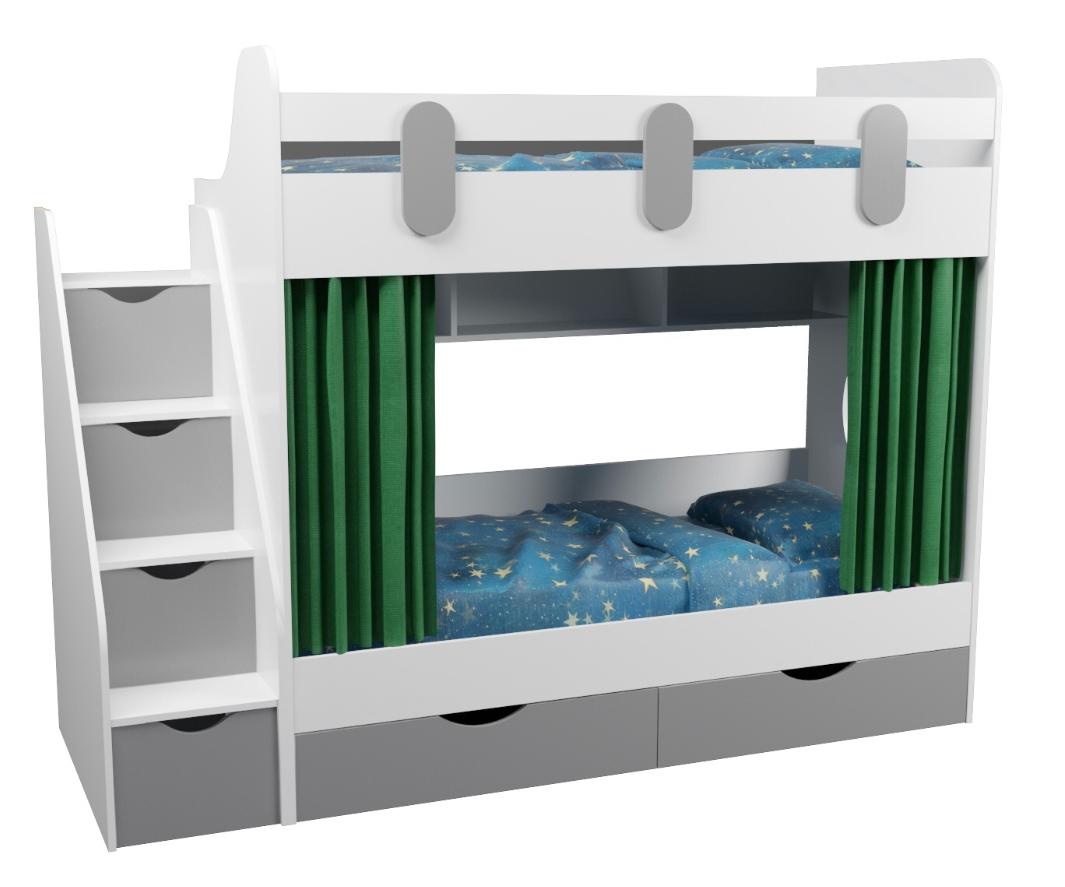 Выдвижные ящики в нижней кровати изготовлены с применением метабоксов, что делает изделие практичным и надежным.