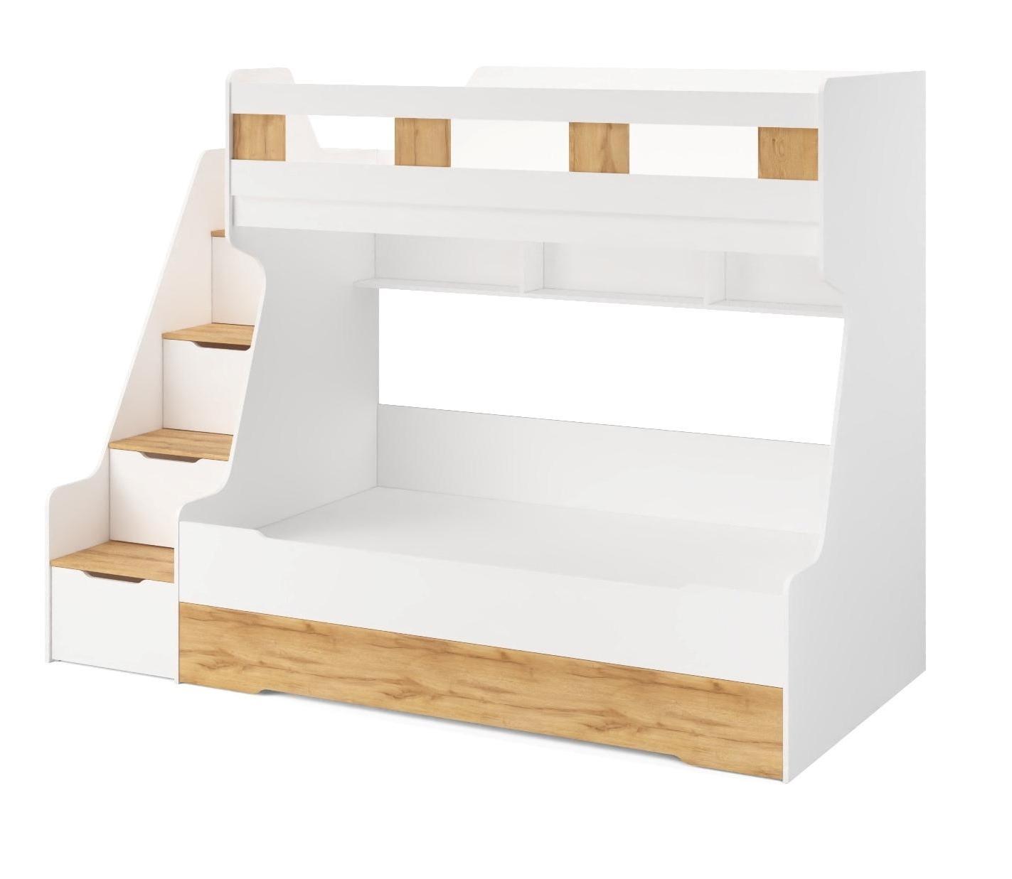 Высокая нагрузка на спальные места. Дополнительное выдвижное спальное место. Удобная лестница. Высокий, безопасный бортик. Прочные ящики! |
