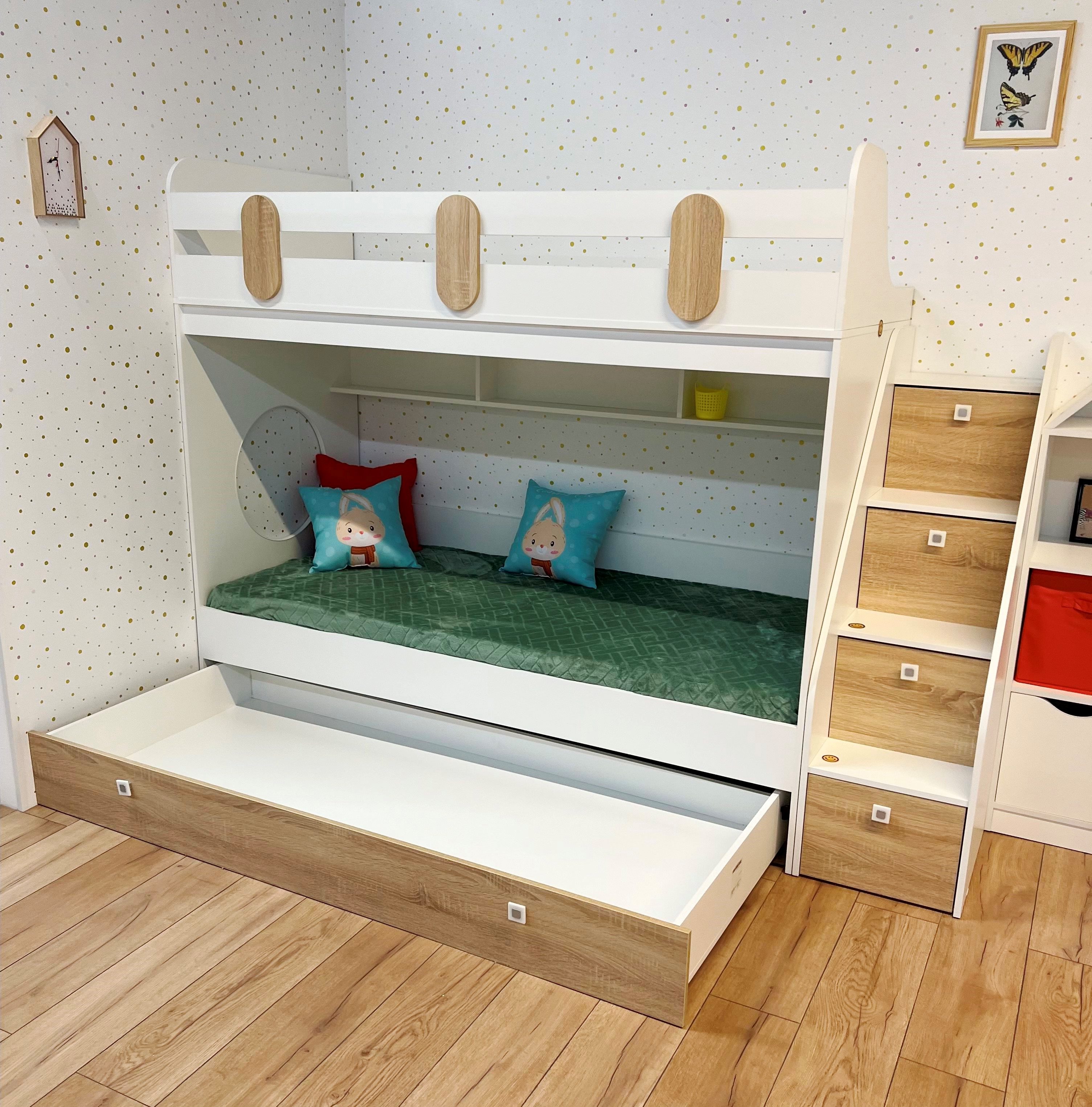 Нижний ящик можно использовать как дополнительное выкатное спальное место (дно для этого специально укреплено)