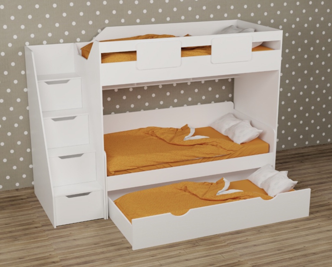 Кровать-чердак Мозаика-2 + кровать Двушка в белом цвете