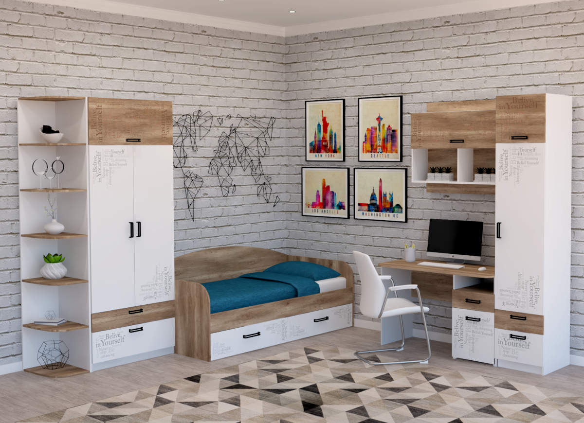 кровать + стол + полка + шкаф + приставка угловая + пенал