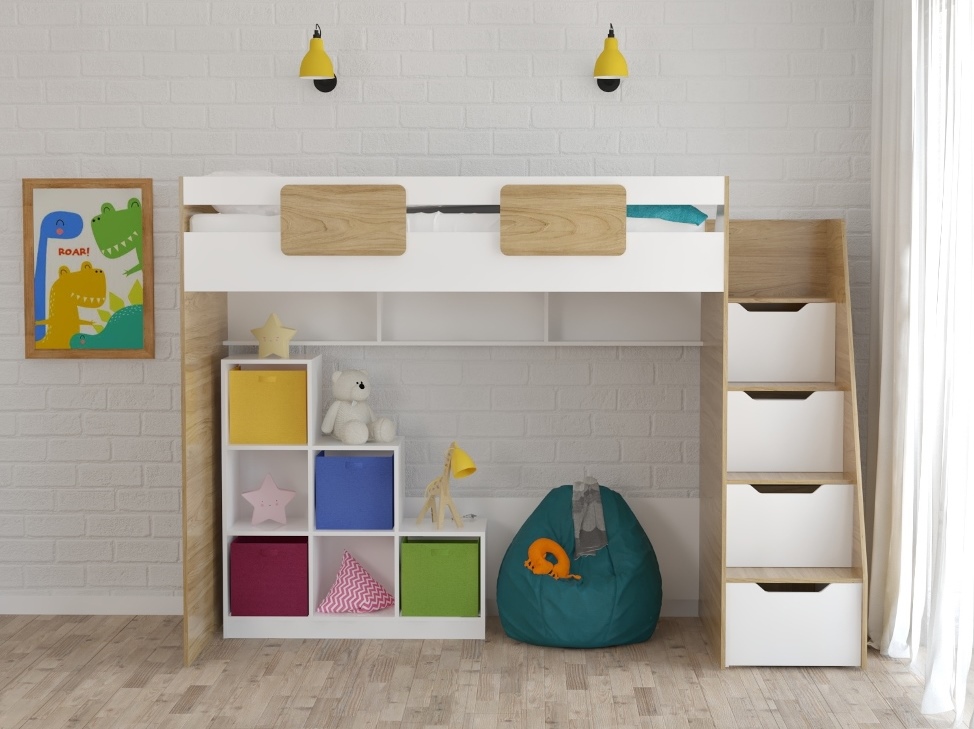 кровать-чердак коллекции Мозаика + стеллаж универсальный (правый/левый)