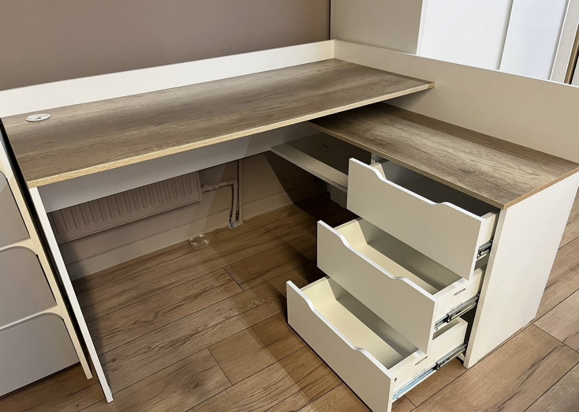 Выдвижные ящики на шариковых направляющих полного выдвижения.