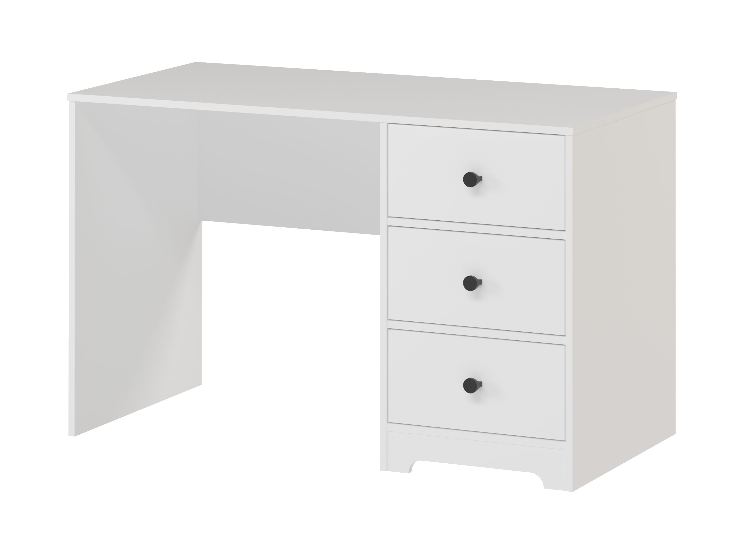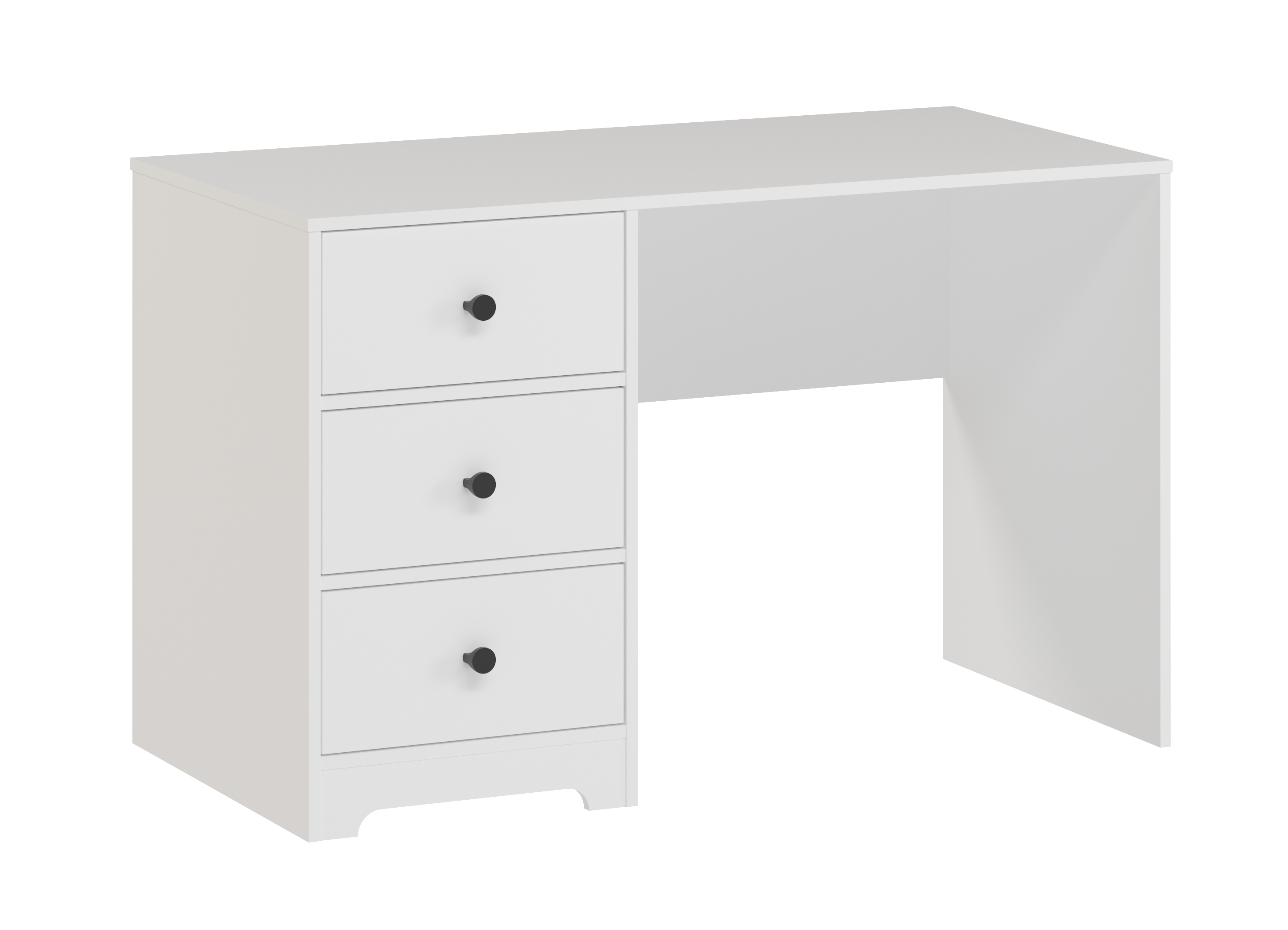 В стол встроены три выдвижных ящика на направляющих скрытого монтажа с ДОВОДЧИКАМИ.