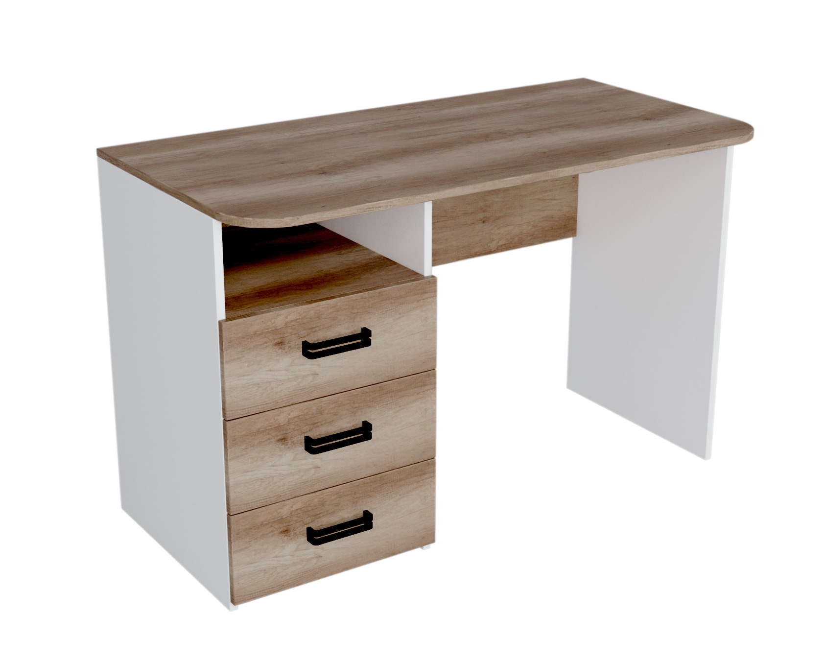 В стол встроены три выдвижных ящика на шариковых направляющих.