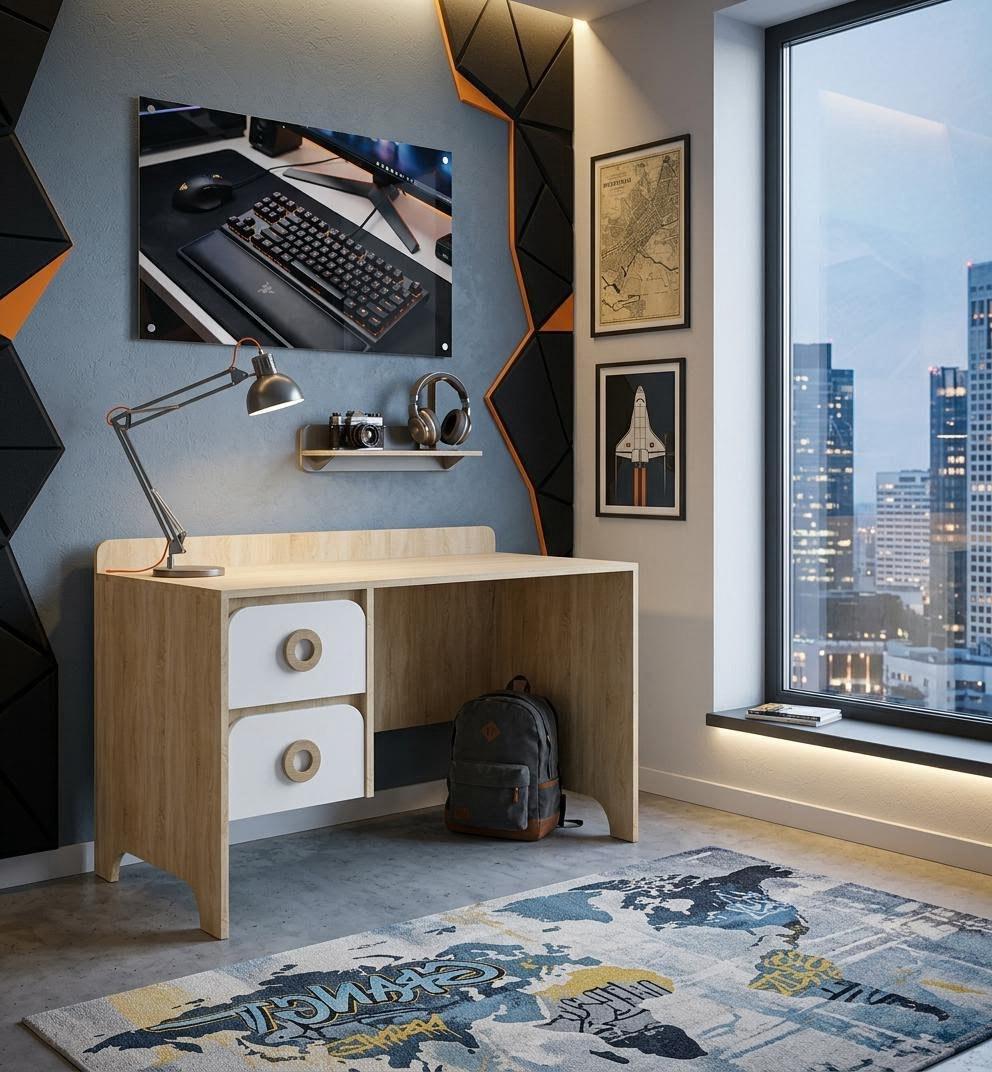 Стол письменный Юни ширина 1200 мм (дуб сонома+белый) от Династия Kids