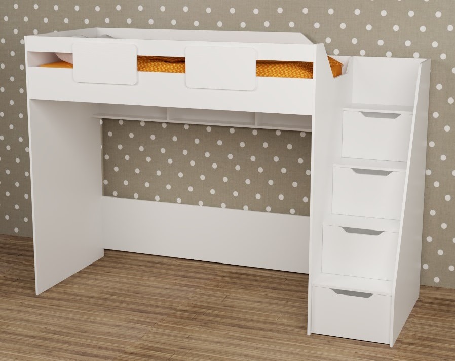 Мебель выполнена из сертифицированного, качественного, экологически чистого ЛДСП класса Е0,5 в белом цвете.