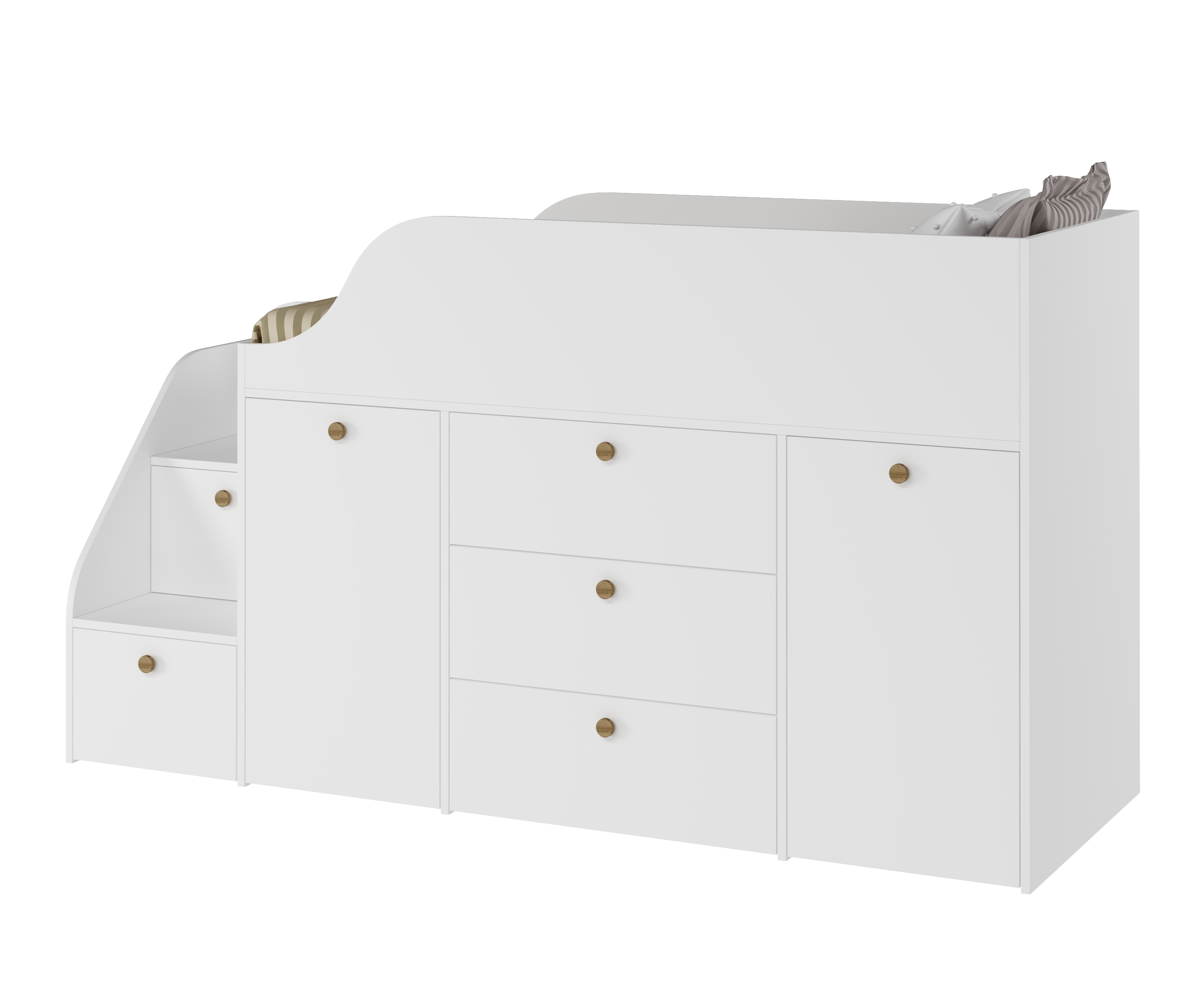 Функциональная кровать с удобной лестницей и множеством мест для хранения детских вещей.