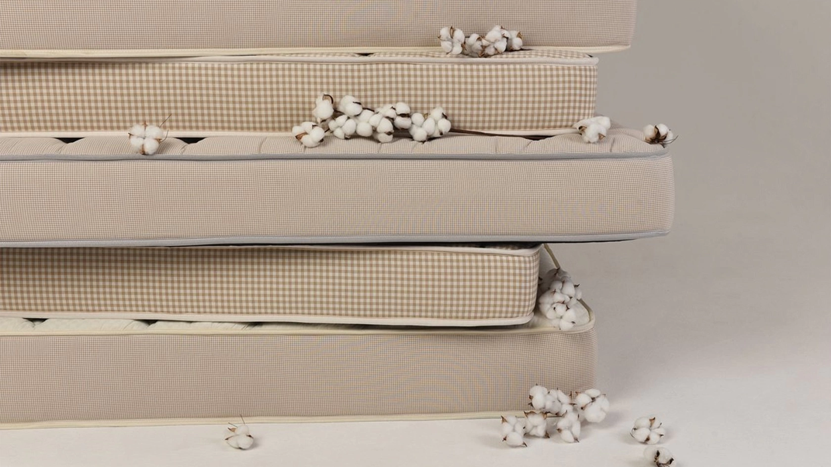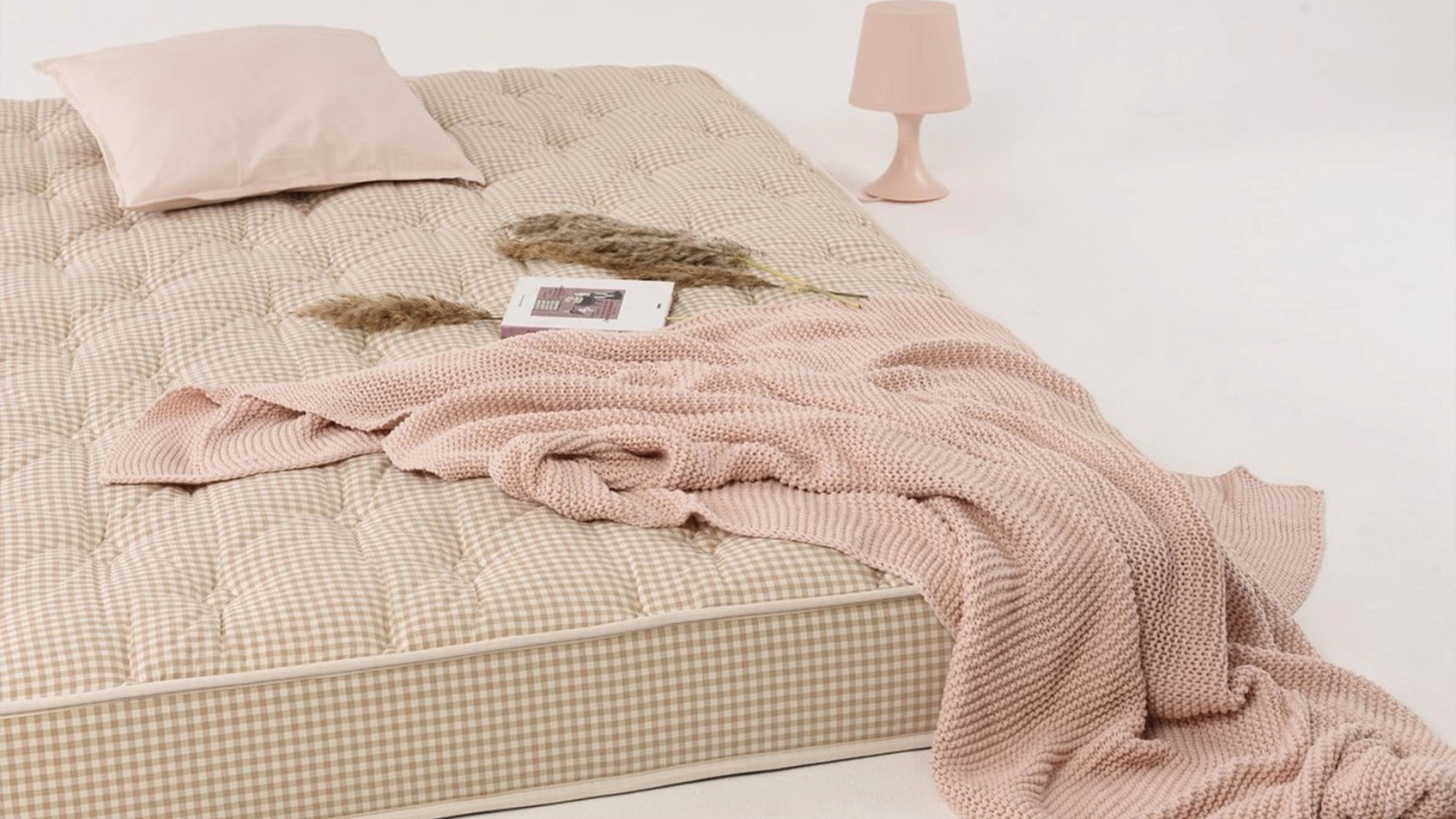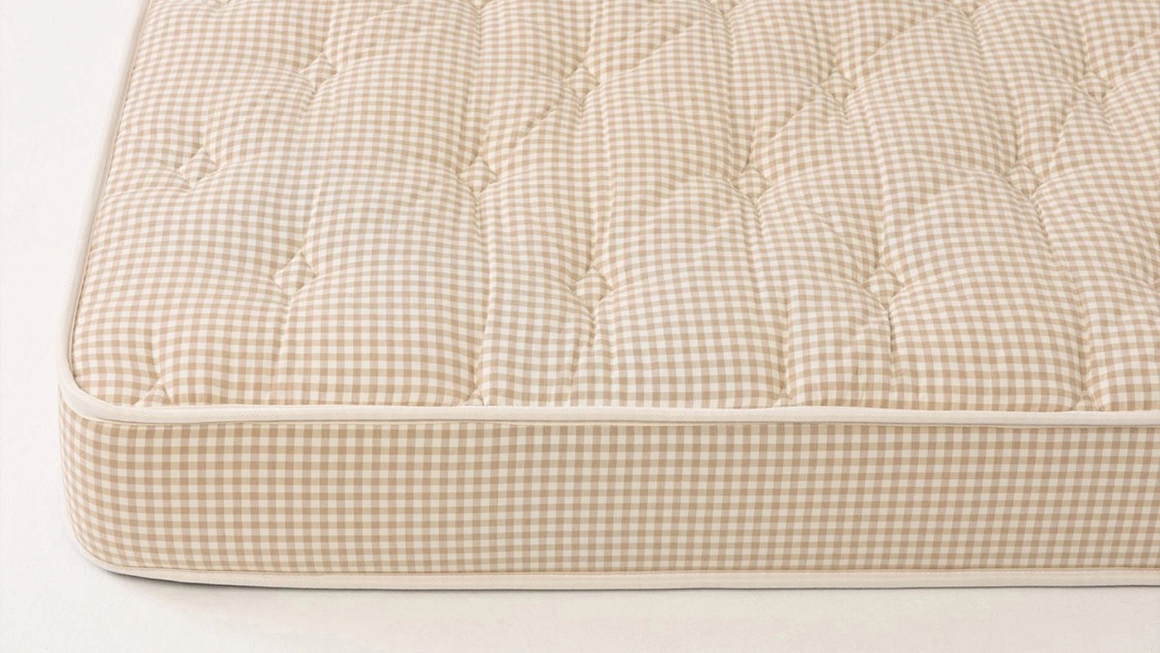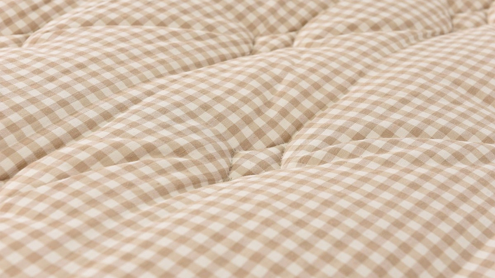 Принт чехла исполнен в трендовой бежевой клетке, поэтому матрас невероятно привлекателен и