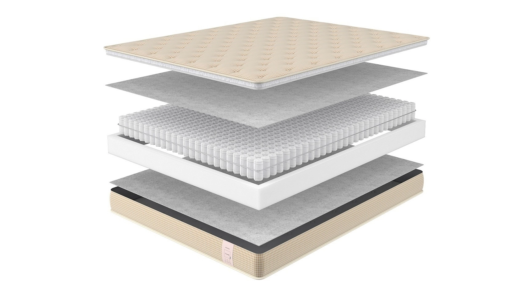 Комфортный слой матраса представлен объемной стежкой (20 мм), состоящей из мягкой ортопены (10 мм) и наполнителя плотностью 300 г/м2.