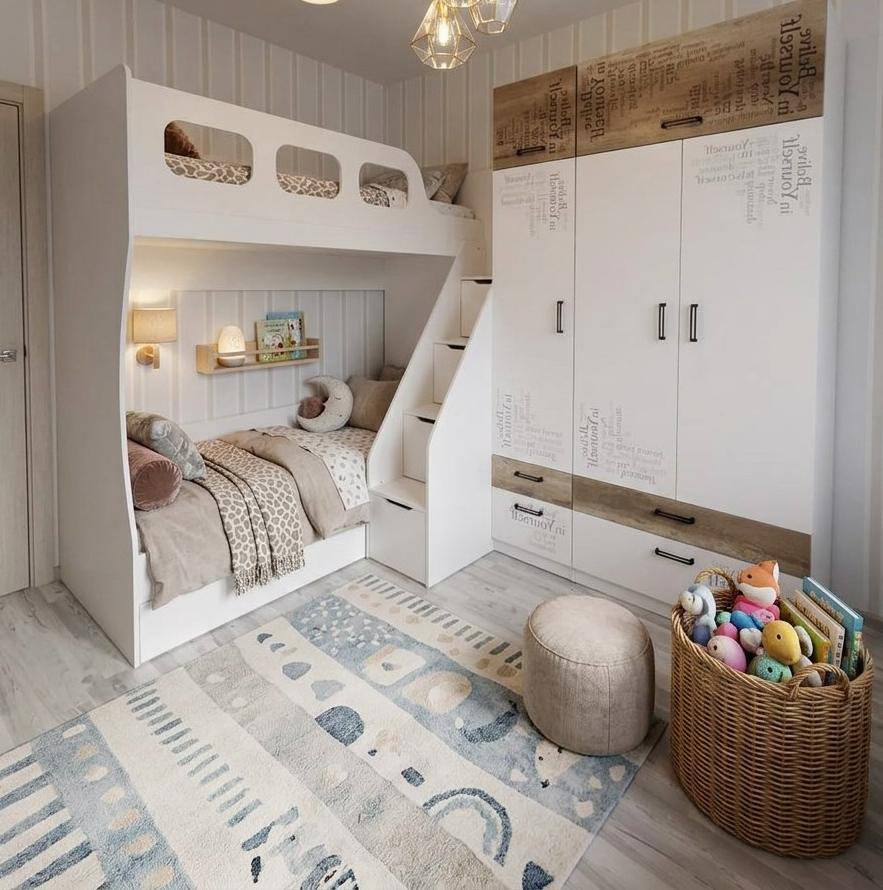 * В нижнюю кровать встроен выдвижной ящик для белья и игрушек.