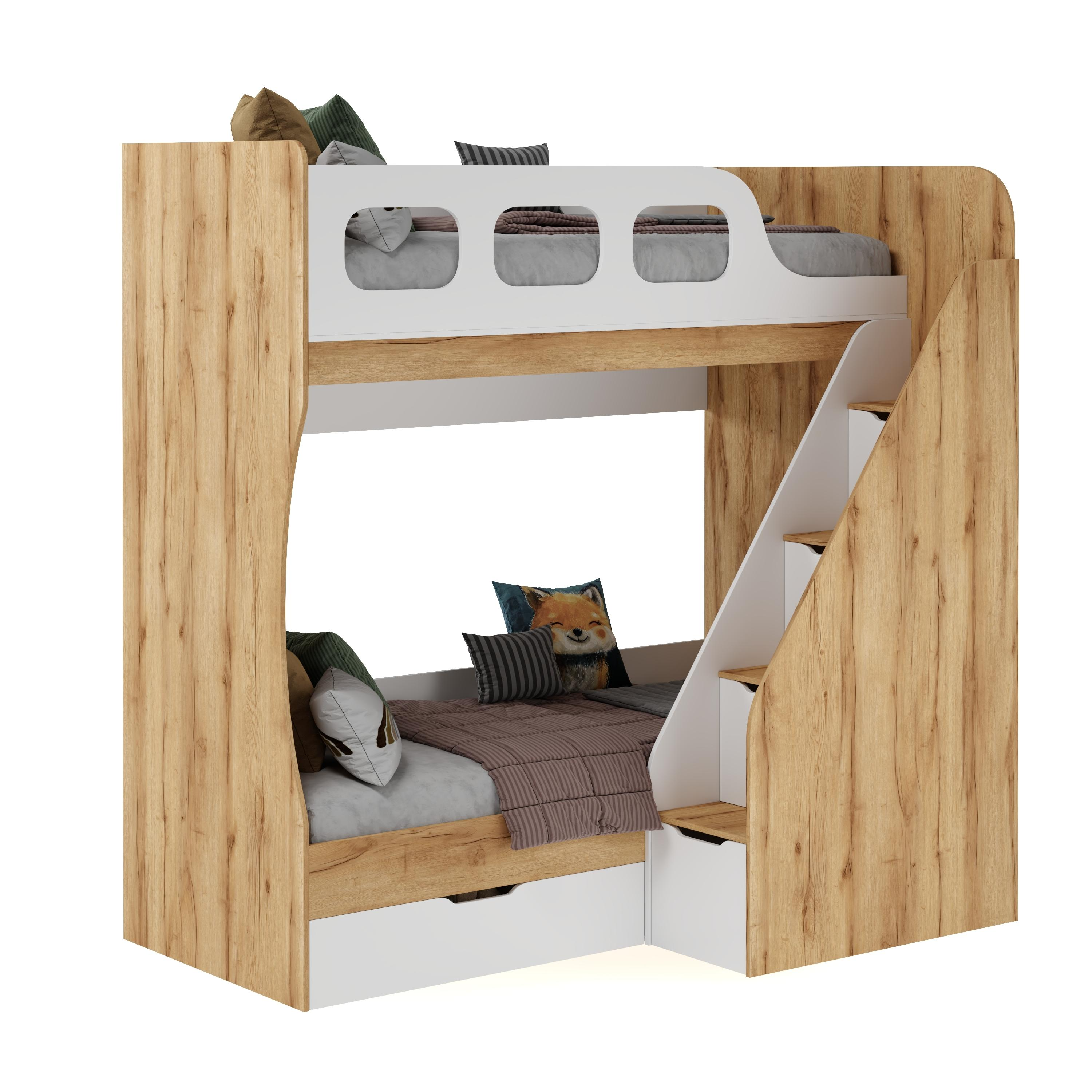 Высокая нагрузка на спальные места. Удобная лестница с ящиками. Высокий, безопасный бортк |