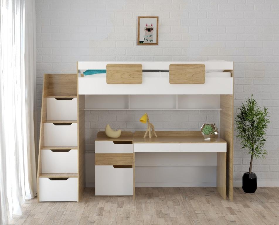 Кровать-чердак Мозаика (правый/левый) + Стол Мозаика + Тумба-комод Мозаика