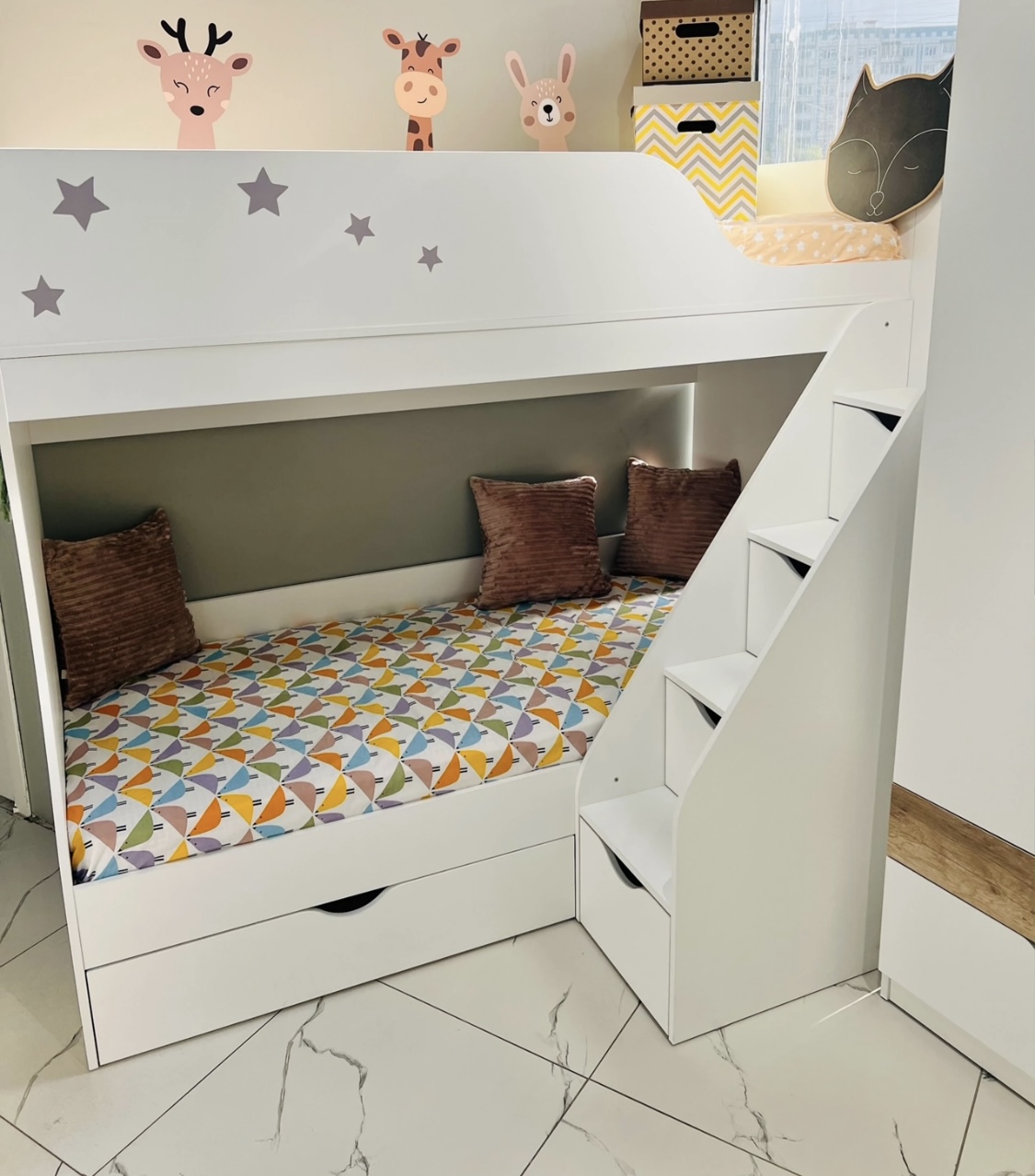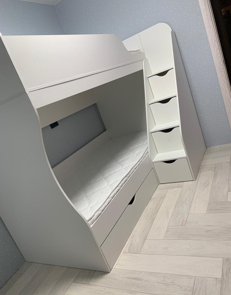 <comment>Оказалась очень удобная кровать. Как раз вместилась как мы и планировали. Дети рады. Лестница прочная, ребенку удобно залазить на второй этаж. Не пожалели, что купили. Качество тоже на высоте. Спасибо вам. </comment>