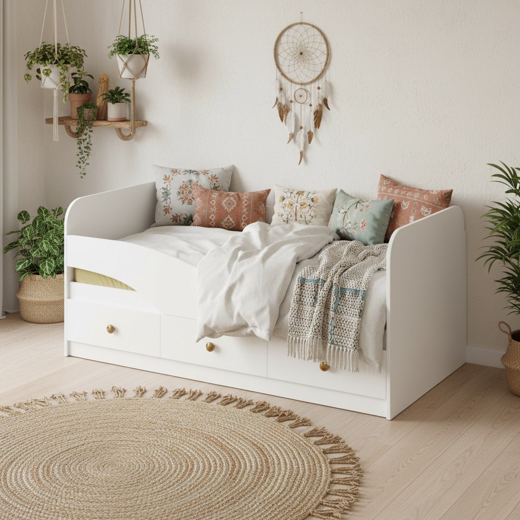 Вместо них - цельный и прочный настил из ЛДСП, который выдерживает сверхвысокую нагрузку и позволяет расположиться даже взрослому с ребенком.