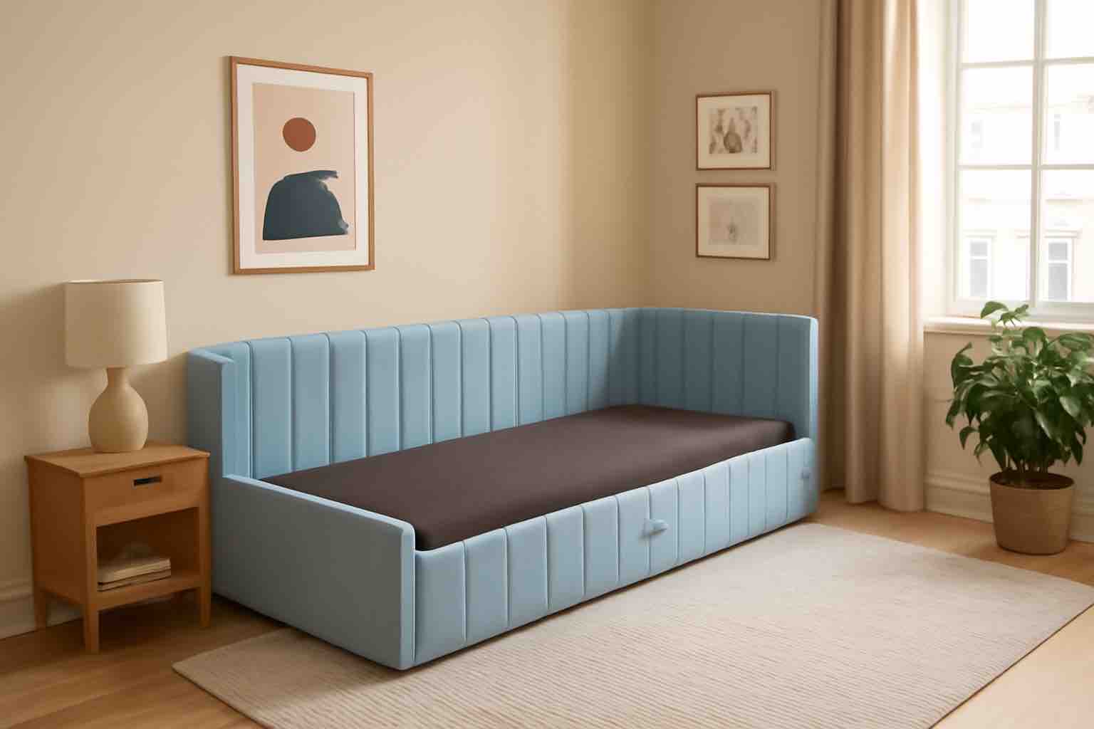 Кровать разработана с учетом требований к безопасности ребенка, сглаженные, мягкие углы, прочная конструкция и безопасные, гипоаллергенные материалы.