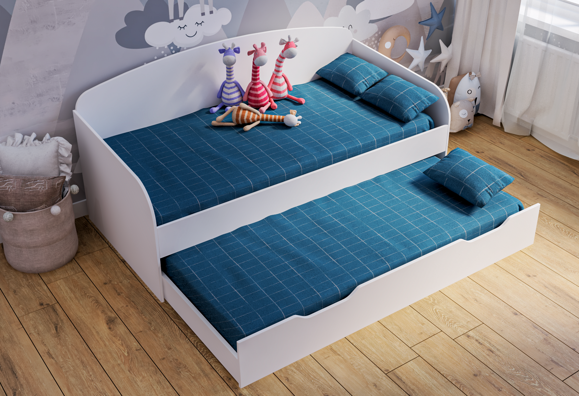 Высокая нагрузка на спальные места. Дно выкатной кровати прочное - выполнено из ЛДСП 16 мм (не ДВП, не ХДФ!) |