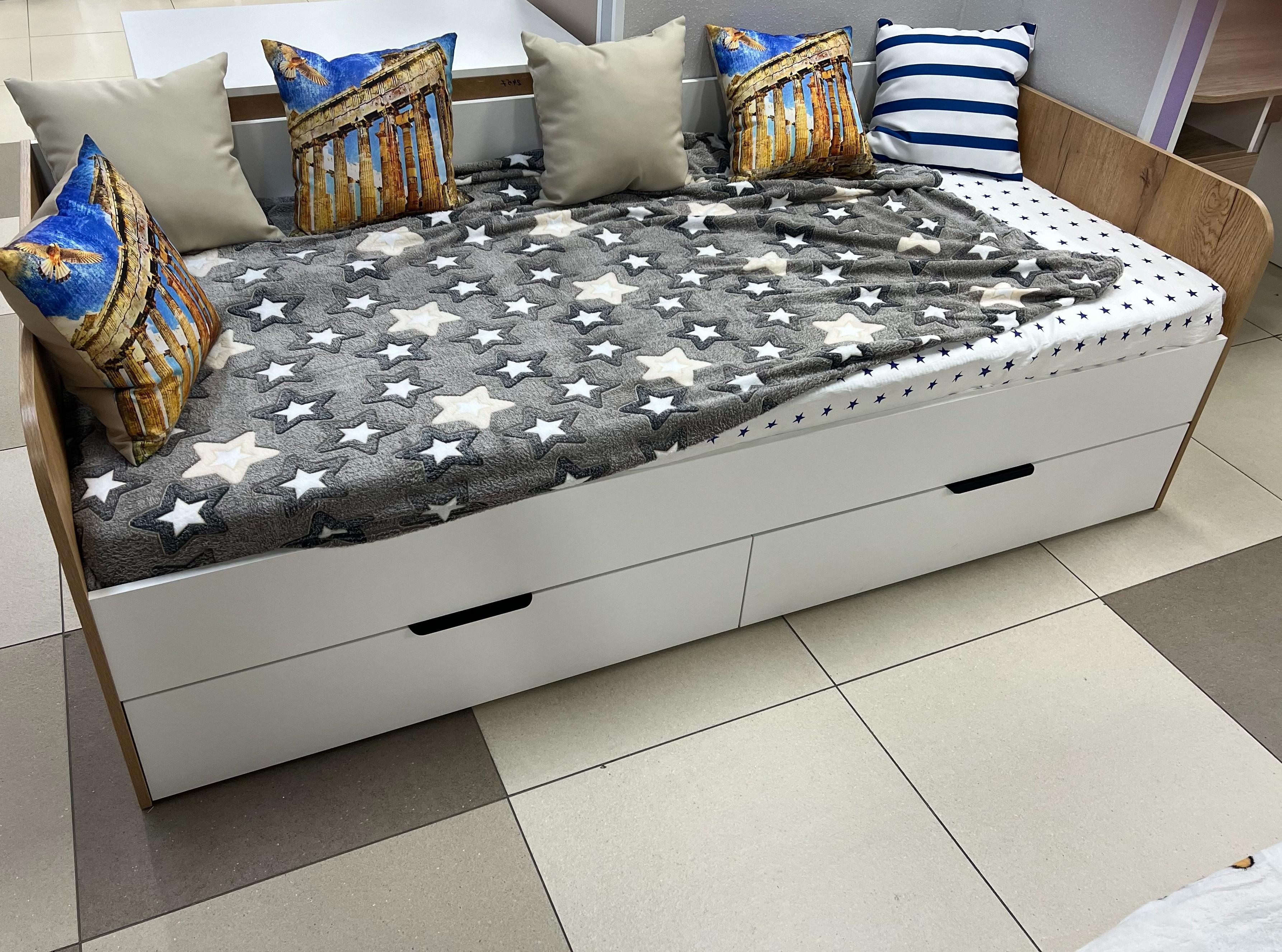 Высокая нагрузка на спальное место. Доводчики, направляющие скрытого монтажа. Прочные ящики! |