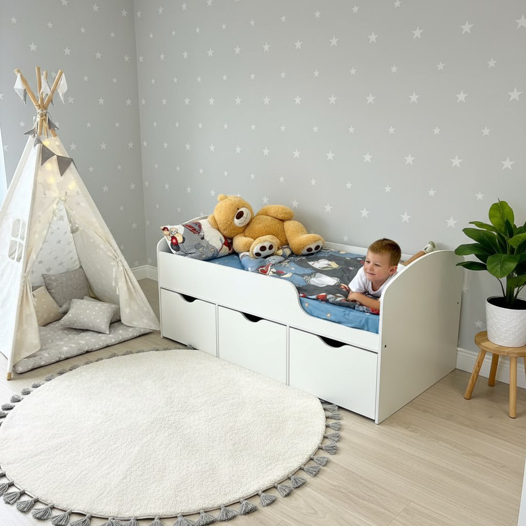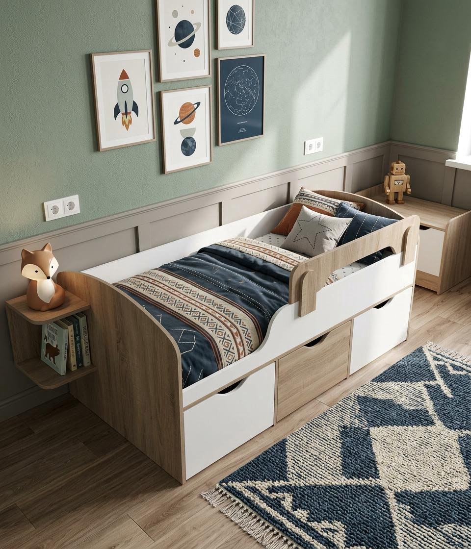 Три вместительных выдвижных ящика помогут всегда хранить личные вещи и игрушки ребенка в собранном виде.