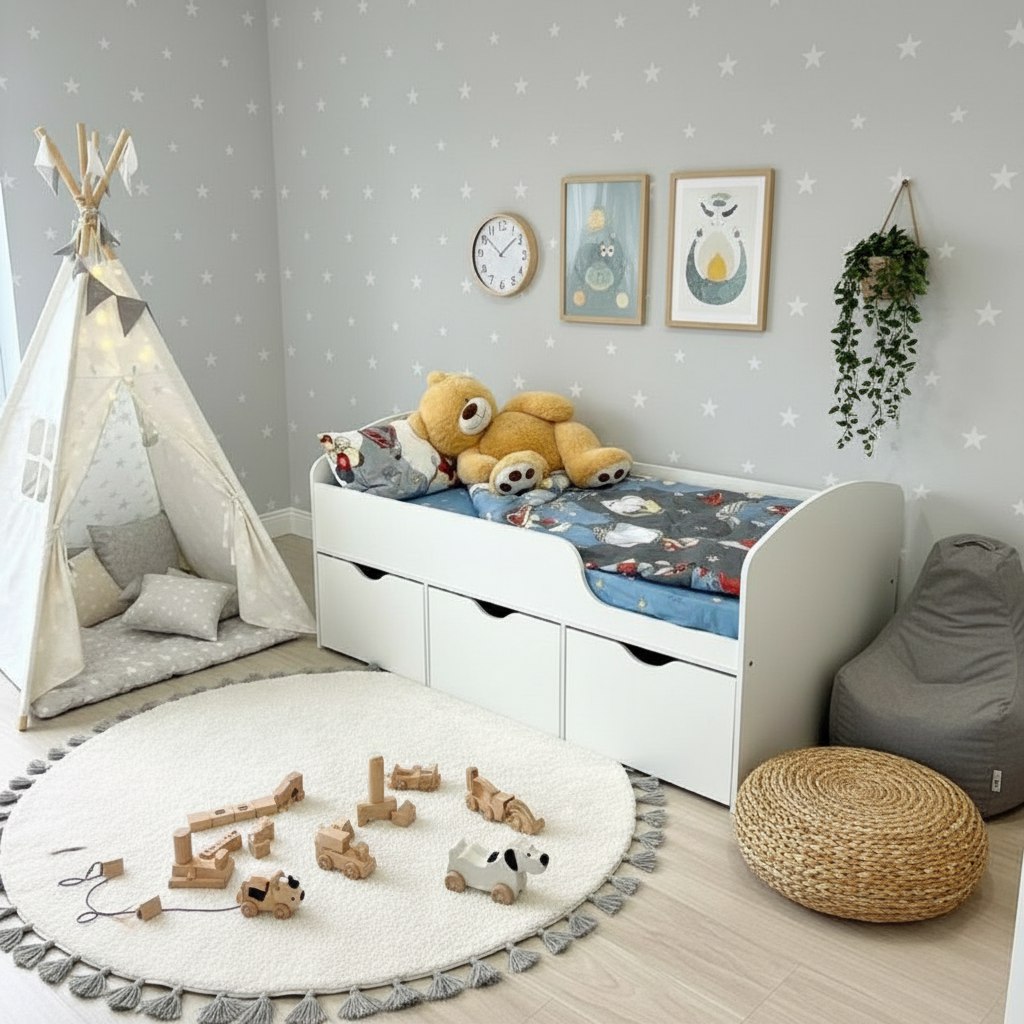 Белая мебель универсальна - создана и для мальчика, и для девочки.