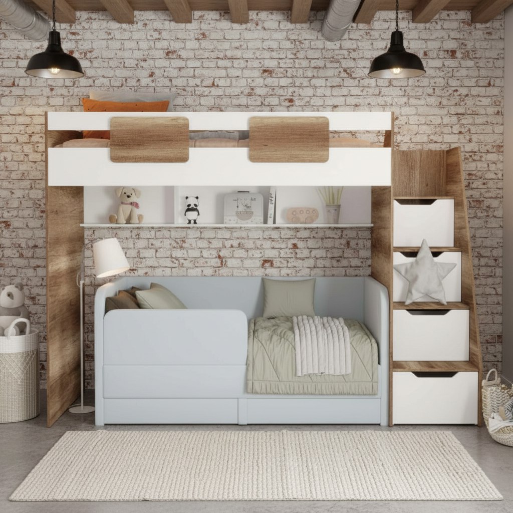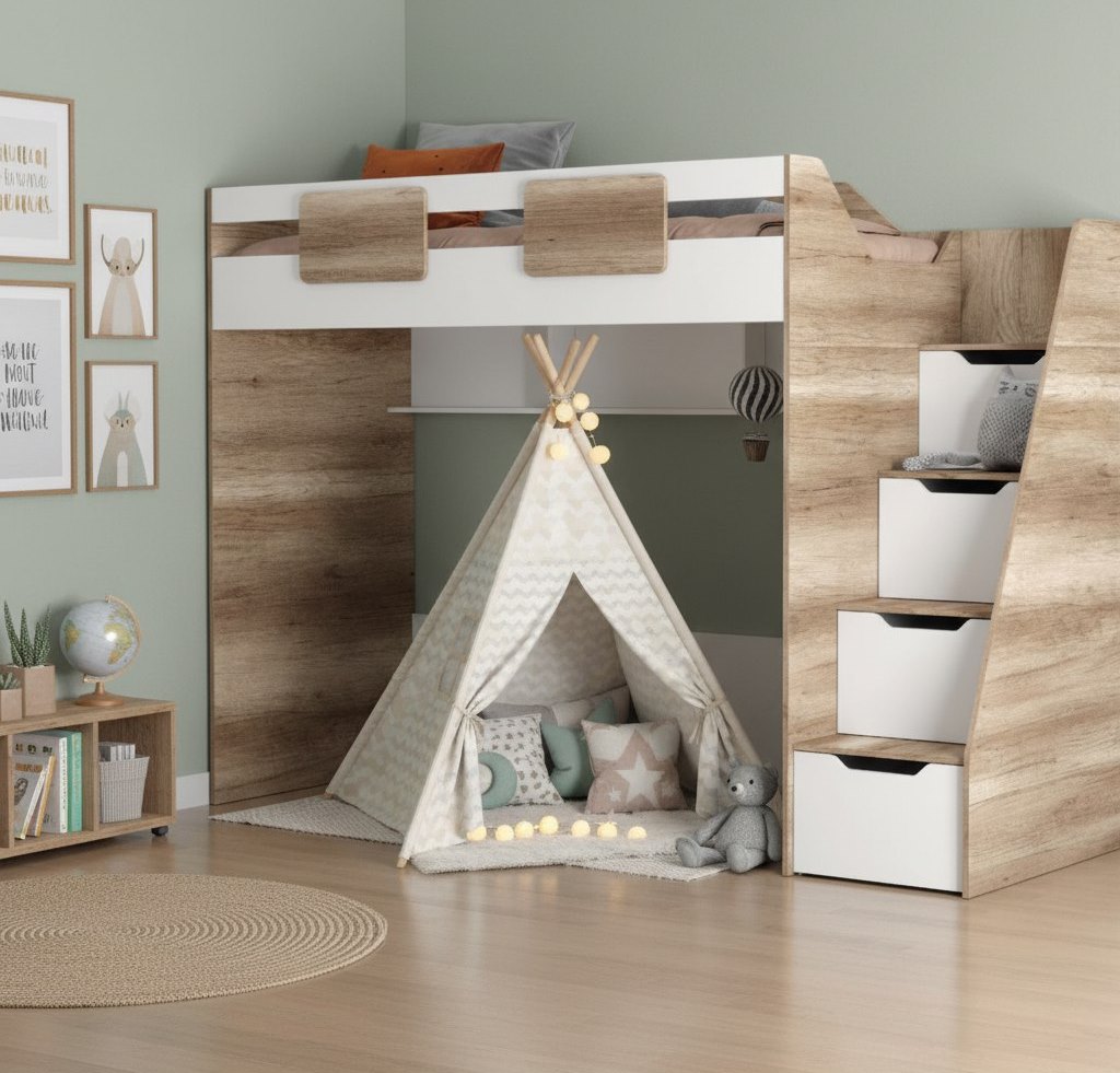 Вместо них - цельный и прочный настил из ЛДСП, который выдерживает сверхвысокую нагрузку и позволяет расположиться даже взрослому с ребенком.