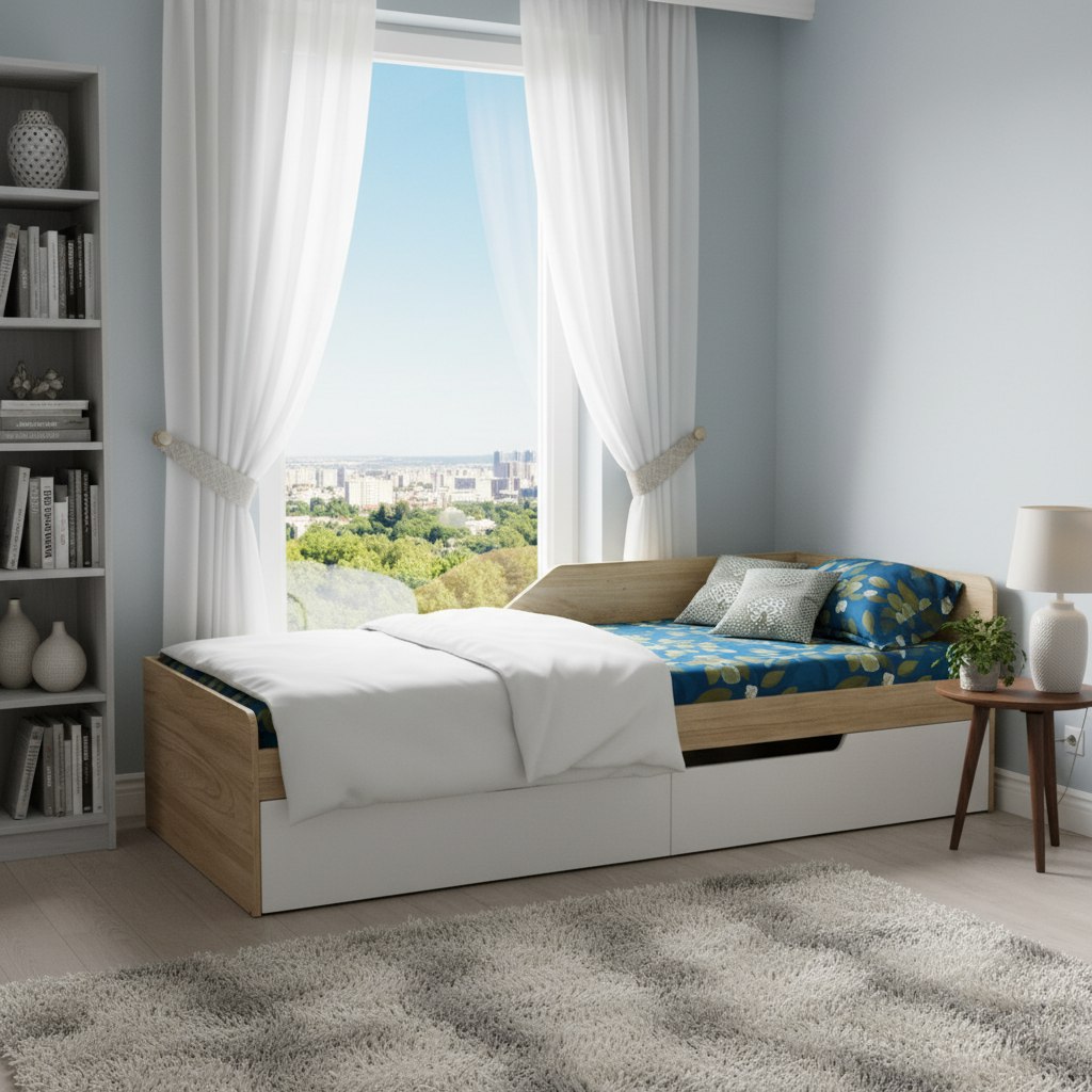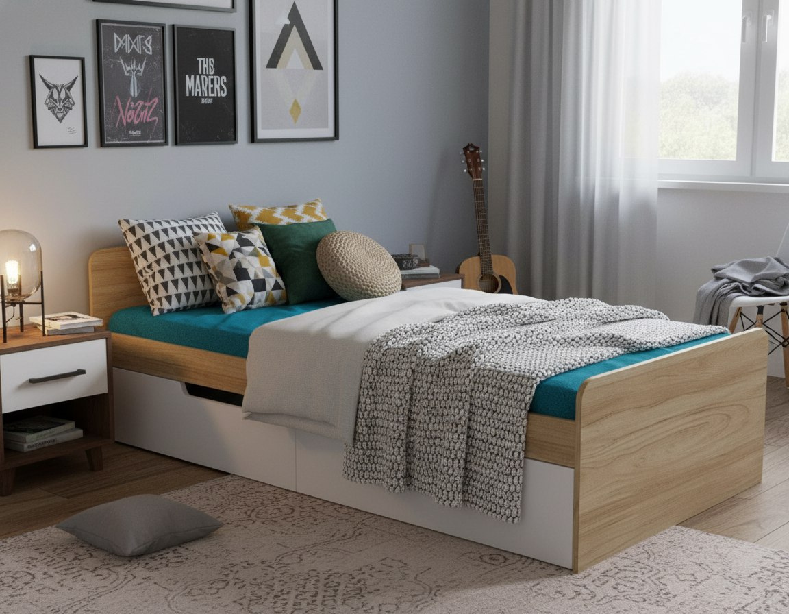 * В кровать встроены два выдвижных ящика на шариковых направляющих полного выдвижения.