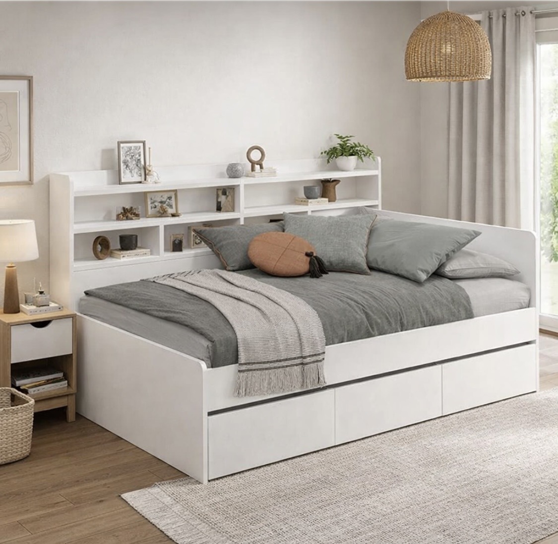 Высокая нагрузка на спальное место. Удобные полочки и ящики
