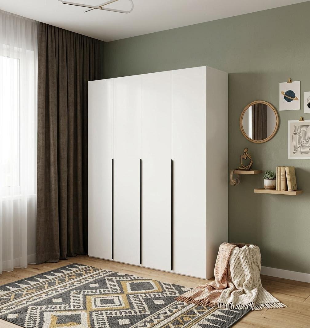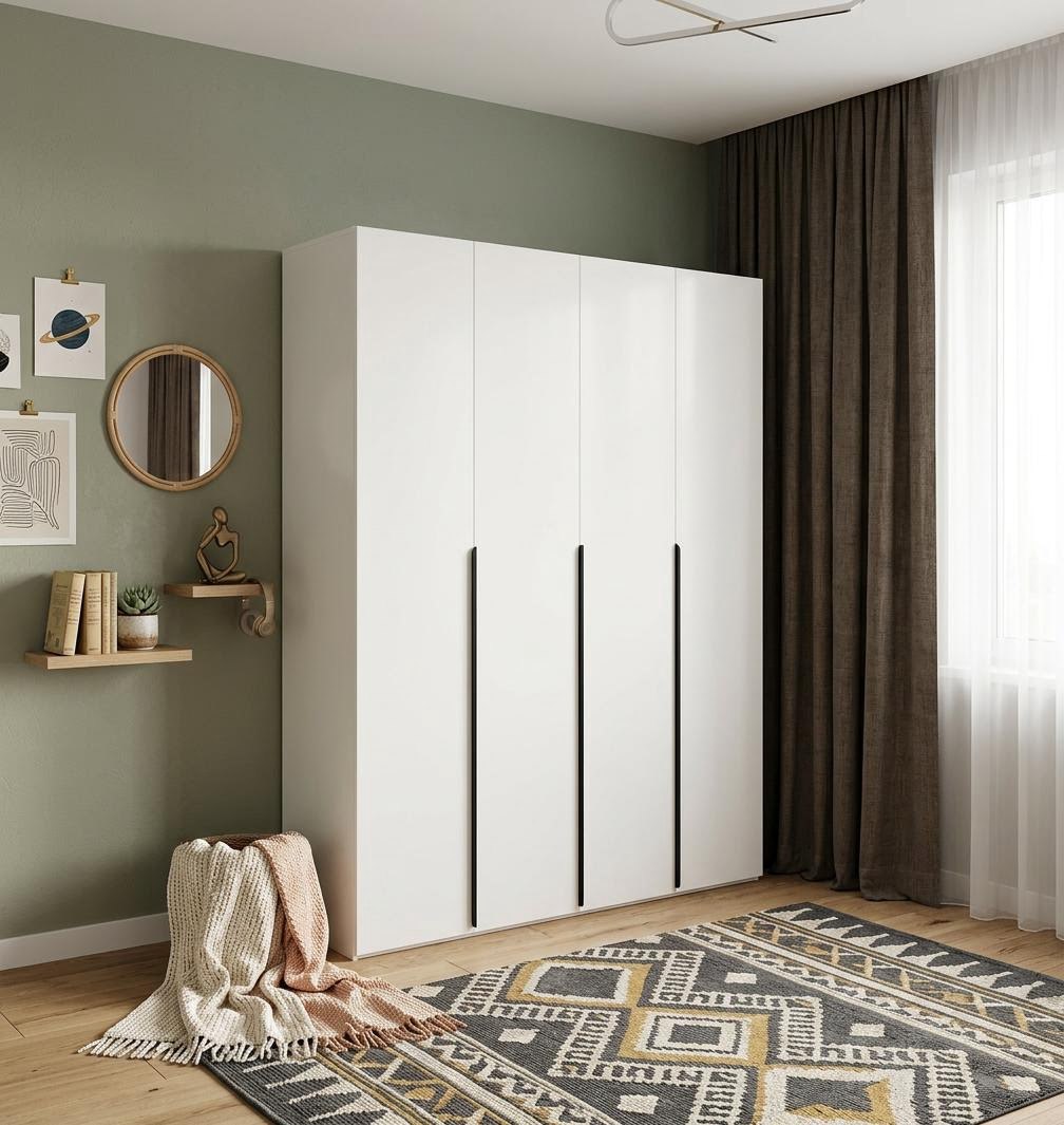 Шкаф имеет четыре распашные двери, которые оснащены доводчиками для плавного и бесшумного закрывания.