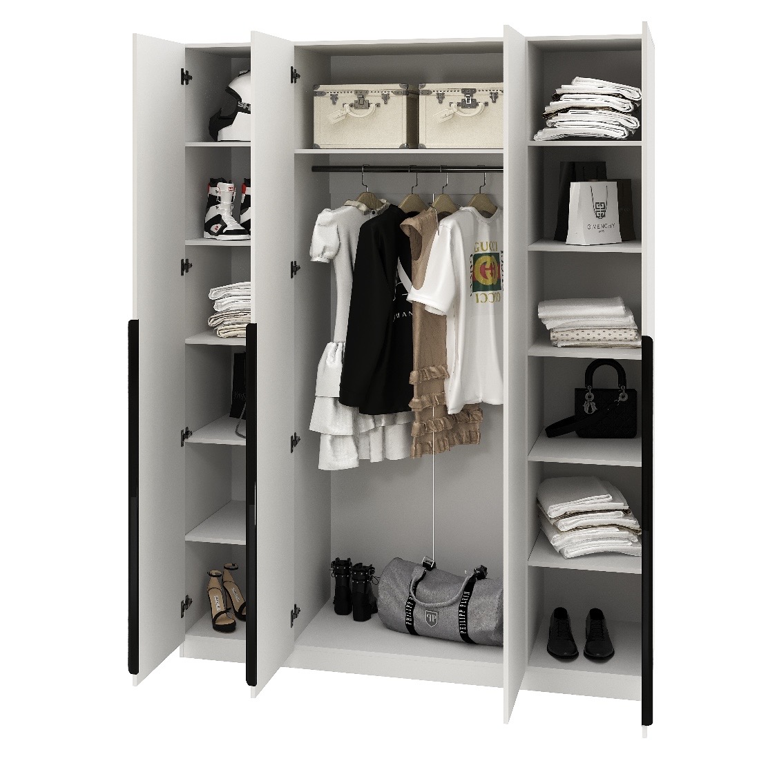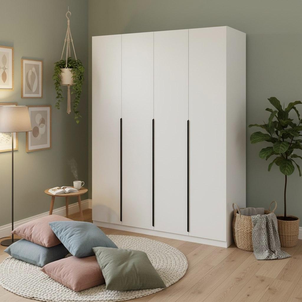 Белый 4-х створчатый шкаф станет практичным решением для хранения одежды и аксессуаров.