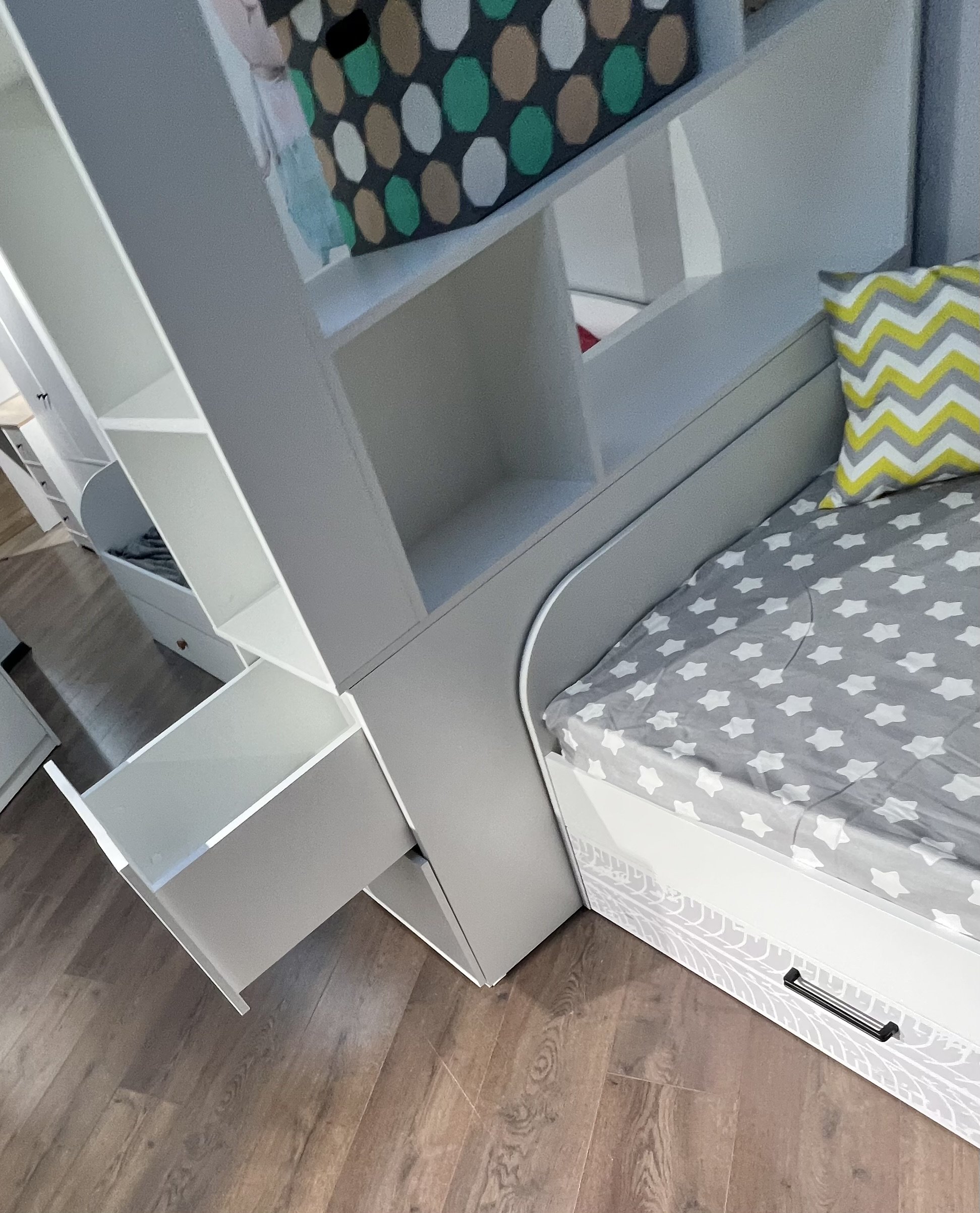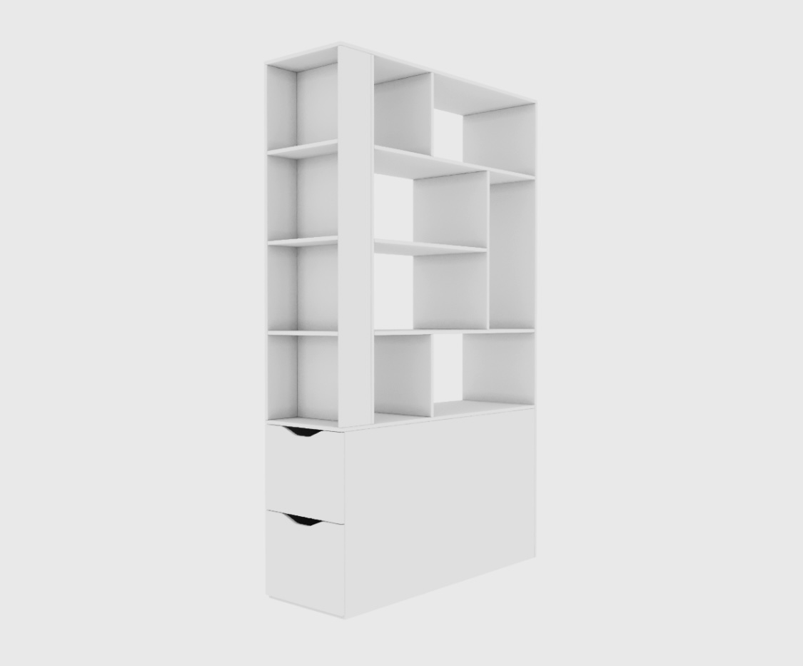 * В стеллаж встроены два выдвижных ящика на шариковых направляющих.