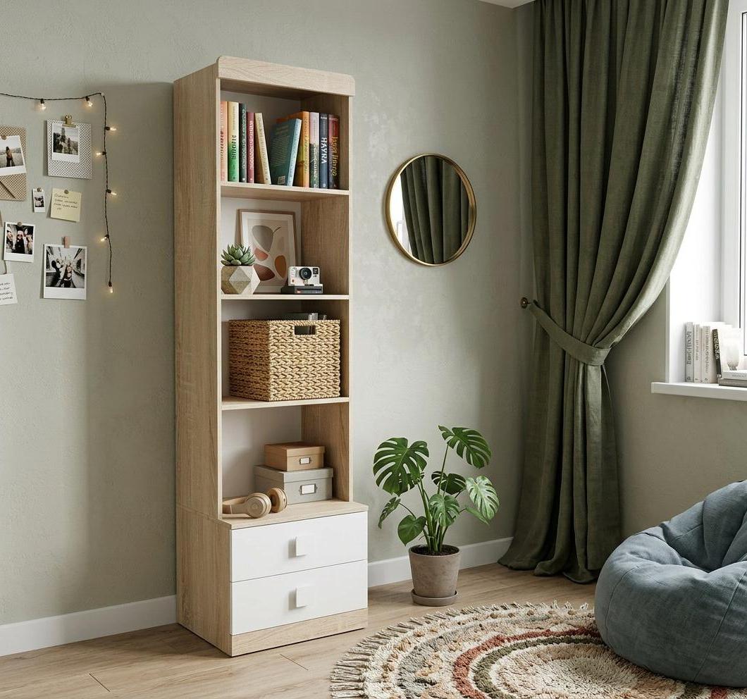 Оттенок натурального дерева "дуб сонома" дает ощущение комфорта и единения с природой, а воздушный белый цвет в интерьере работает как основа для ярких штрихов.