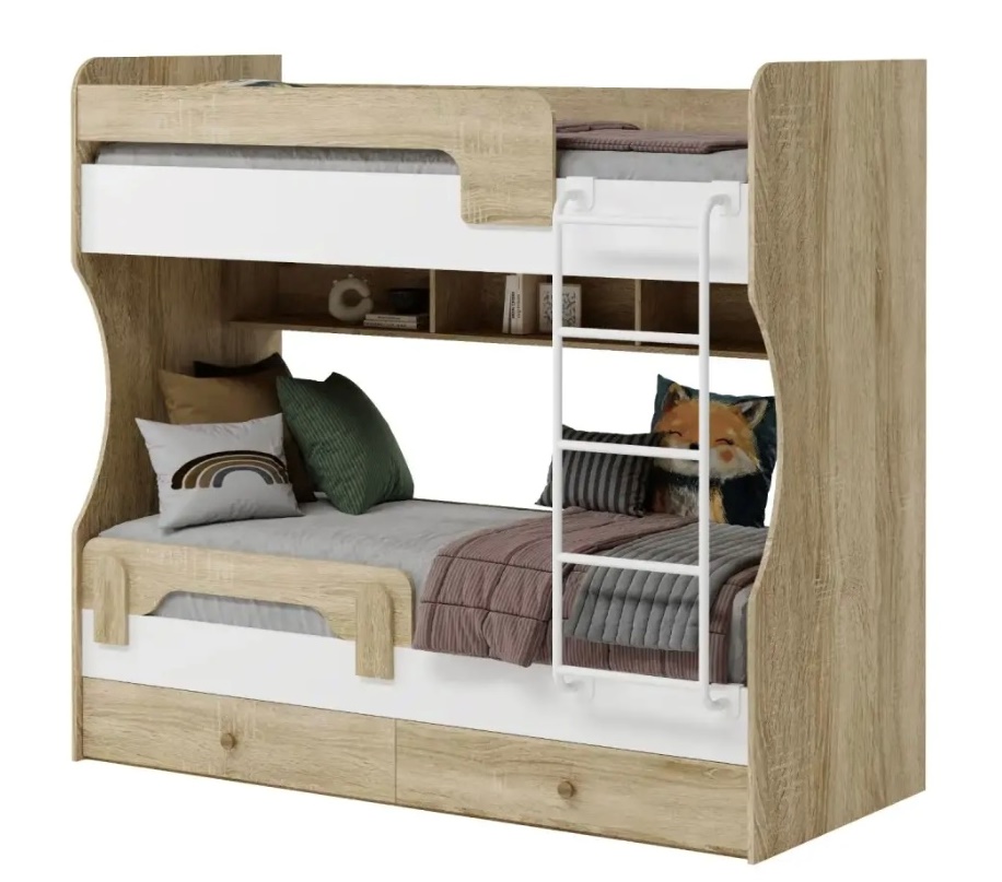 Двухъярусная кровать в белом цвете идеальна для любых интерьеров.