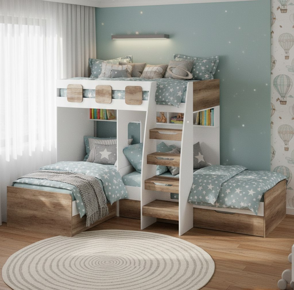 Преимущества детских трехъярусных кроватей