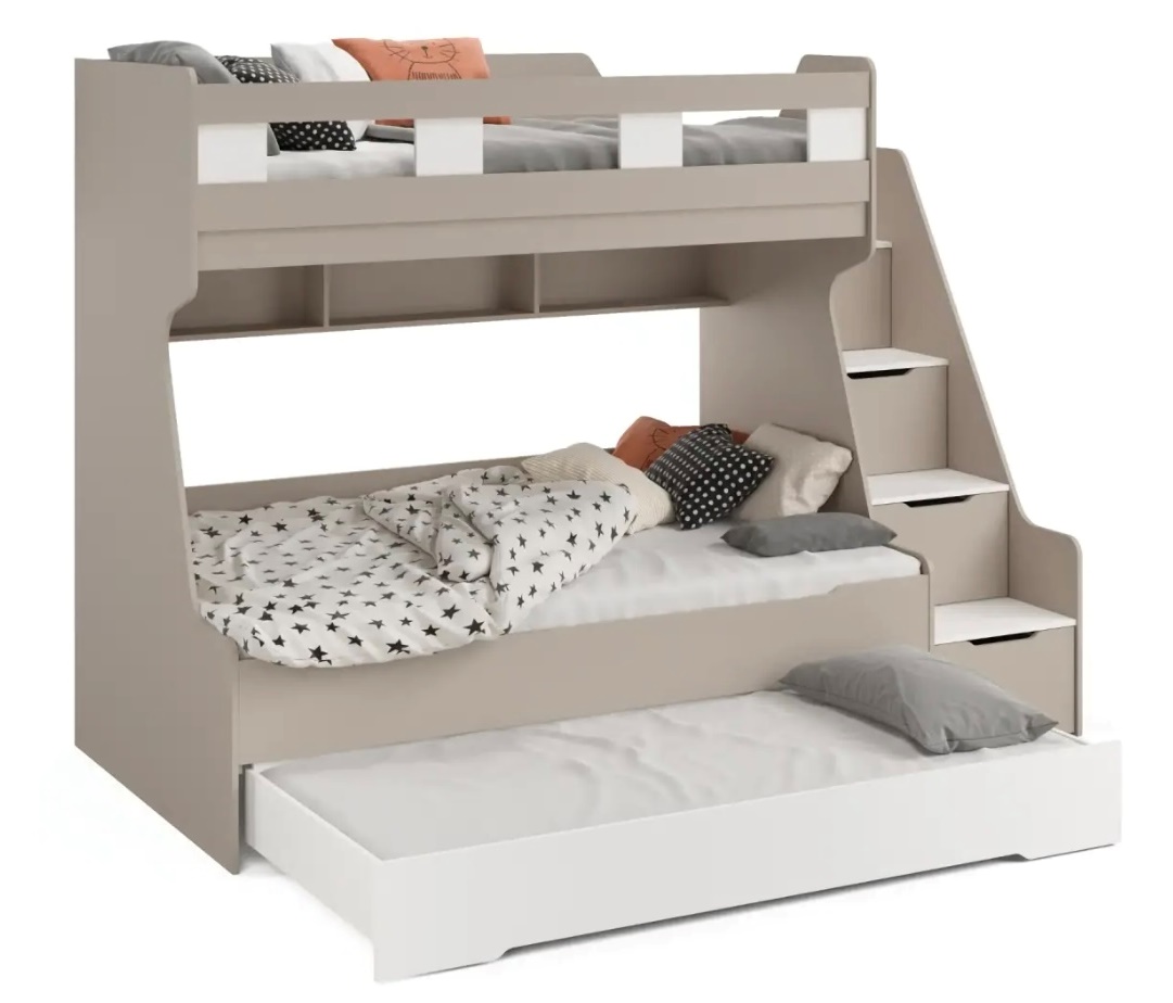 - Максимальная функциональность - два яруса обеспечивают удобство и экономию пространства, а дополнительное спальное место легко выдвигается, когда это необходимо.